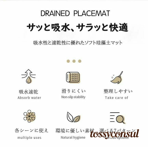 商品情報 【商品名】 マット キッチン 【素材】 ポリエステル 珪藻土 【サイズ】 写真通り 【特徴】 ■敷き替えなしでオールシーズン使いまわせるお手軽ラグ。 吸水性・通気性・保温性に優れているので夏はサラリと、冬はフワフワで季節を問わず心地よくお使いいただけます。 【滑りにくい】裏面に「滑りにくい加工」を施しました。ズレにくいからお掃除ラクラクです。 マットのずれによる床キズ、転倒などによる怪我を防止できます。 【静音でノイズ低減】防汚性抜群で防音性も良いので、細菌が繁殖しにくくなります。床の保護マットとして活躍します。床についている傷隠しにも役立ちします。 【洗える】丸洗いできるのでお手入れ簡単。表面の汚れを落とすのに柔らかいスポンジ等でなでるように洗うことを推奨しております。 【返品・交換について】 ◆返品・交換の場合、未使用の商品のみ到着日から7日以内にご連絡頂ければ、対応させて頂きます。万が一お届け商品がご注文内容と異なったり、欠陥、汚損があった場合、交換、もしくは返金させて頂きます。 注意事項 ※生産時期によって厚さや色味が若干異なる場合がございます。 ※商品到着する時の折りシワは時間が経つと徐々になくなります。 ※色合いはモニター環境により若干の誤差が出ます。 ※開封する時の匂いが気になる場合は風通しのいい場所で陰干ししてください。 ※マットに飛び乗ると、すべる場合があり大変危険です。十分にご注意ください。 ※当店の商品は海外製造商品のため、輸送上の都合等で多少色落ち、商品に多少の汚れや傷や毛糸などが付いている場合がございます。 ご使用に支障の無い傷、汚れは不良品対象外とさせていただきます。 【梱包について】 ▲現在、弊ショップの包装につきましては、簡易包装にて郵送しておりますので、プレゼント用のラッピング包装、熨斗の添付はできません。ご了承の上で、お買い上げください。 ▲複数ご注文いただいた場合の同梱配送は可能です。 【返品・交換について】 ▲返品・交換の場合、未使用の商品のみ到着日から7日以内にご連絡頂ければ、対応させて頂きます。万が一お届け商品がご注文内容と異なったり、欠陥、汚損があった場合、交換、もしくは返金させて頂きます。 【その他】 ▲モニターの発色の具合によって実物とと色が異なる場合がございます。実物に近いカラーはカラーバリエーションをご参考ください。 ▲商品到着時に箱が破損、商品破損、また梱包に異常があった場合は、発送中の破損事故となりますので、受け取り拒否でお願い致します! ※折り畳んでの包装の都合上、使い初めの際にシワが見られる場合がありますが、使用するにつれて目立たなくなりますので、不良品対象外となります。予めご了承ください。 ▲商品発送後の住所変更、サイズとカラーの変更、キャンセルはお受けできません。 ▲初期不良品以外の返品、返金はお受けできませんので、予めご了承ください。 ▲イメージ違い、サイズ及びカラーの買い間違えなどによる返品、返金、交換はお受けできません。予めご了承ください。 ▲万一汚れや破損などの不良品が届いた場合、必ず到着日を含め3日以内にご連絡をください。 ▲輸入品のため、メーカーや仕入先の在庫保管方法の違いや、長距離輸送や航空輸送により、多少細かなキズや汚れ等が見られる場合がございます。 ▲ご存知の通り海外の工場での縫製は日本の工場と比べますと、細かい点で雑に見えるものがございます。不良品ではありません。 ※サイズ表記は手作業にて行っておりますので、 実物と若干の誤差が生じる場合があります。