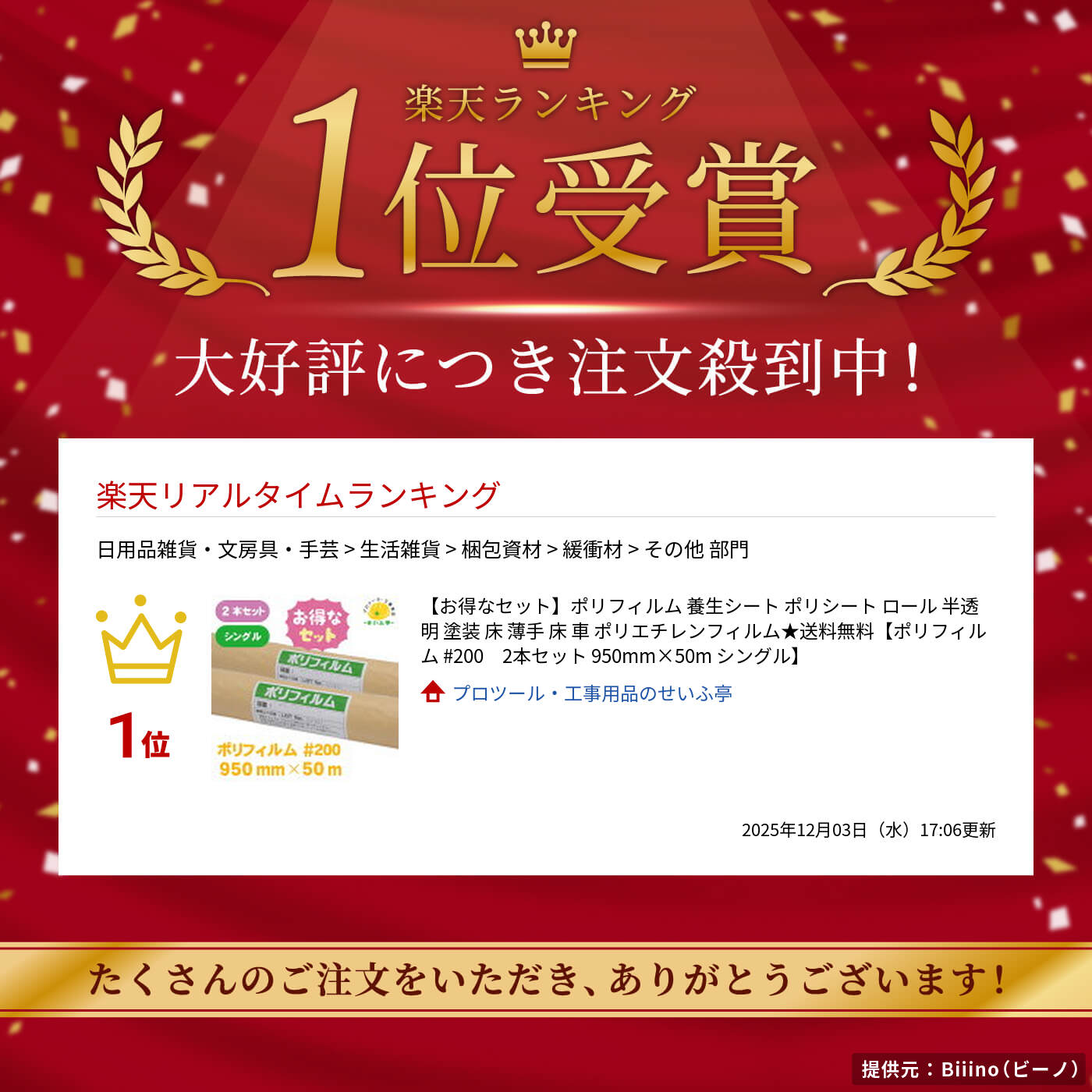 【お得なセット】ポリフィルム 養生シート ポリシート ロール 半透明 塗装 床 薄手 床 車 ポリエチレンフィルム★送料無料【ポリフィルム #200 2本セット 950mm×50m シングル】