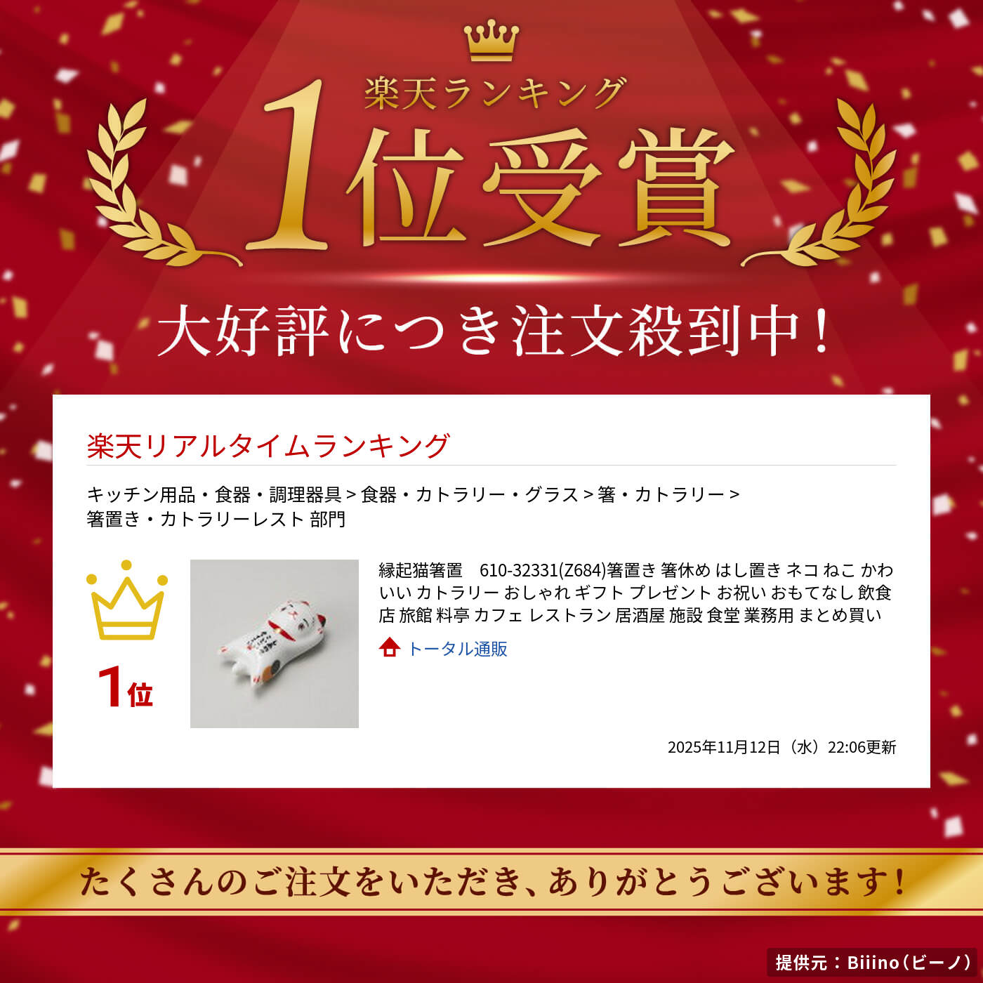 縁起猫箸置 610-32331(Z684)箸置き 箸休め はし置き ネコ ねこ かわいい カトラリー おしゃれ ギフト プレゼント お祝い おもてなし 飲食店 旅館 料亭 カフェ レストラン 居酒屋 施設 食堂 業務用 まとめ買い