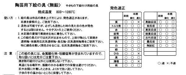 陶芸用下絵の具 12色セット 黄、トルコ青、赤、紺青、緑青、茶、白、緑、ひわ、黒、肌、桃 チューブ 各17g 焼成温度 : 800℃〜1300℃陶芸用下絵の具 12色セット 黄、トルコ青、赤、紺青、緑青、茶、白、緑、ひわ、黒、肌、桃 チューブ 各17g 焼成温度 : 800℃〜1300℃