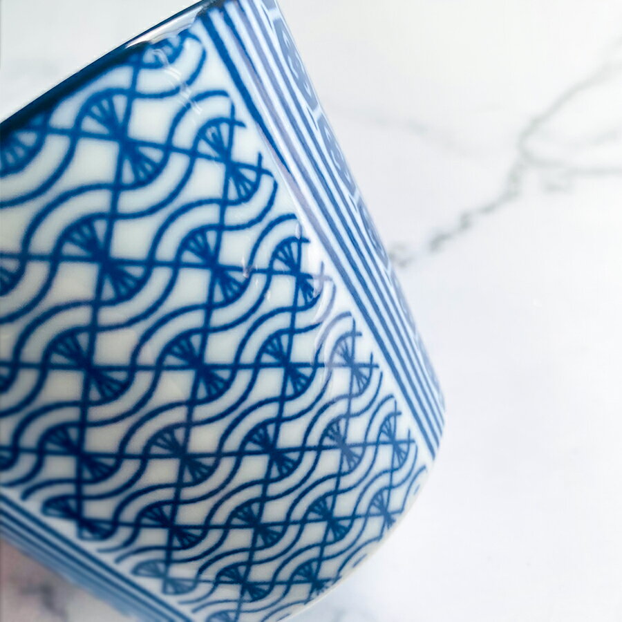 \クーポン配布中!/古青藍(こせいらん) 蕎麦猪口 225cc H7cm 直径6.7cm そば猪口 蕎麦ちょこ デザートカップ 茶碗蒸しの器 蒸しプリン 和柄 伝統 紋様 日本 文化 模様 夏食器 おしゃれ 藍染 藍色 ブルー 陶器のふる里 trysま