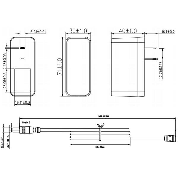 【 製品仕様 】 品番 TK-12V-24W〔室内用〕 入力電圧 AC100~240V 50/60Hz 出力電圧 DC12V 最大出力 24W 寸法 71×40×30mm(突起部含まず) 重量 110g コード長さ 約1.5m プラグ規格 φ2.1mm(内径) φ5.5mm(外径) 電源選定 ◎電源選定の際は必ず使用機器、または、 使用照明器具の各仕様に合った電源をご使用ください。 使用機器・照明器具と仕様が合わない場合、 各種不具合・事故の原因となります。 ◎電源は設置環境により使用可能時間が変わります。 設置する際は必ず周囲温度が低く、 風通しのよい場所に設置してください。 また、使用可能時間を延ばしたい場合、 対応電源のワンランク上の電源を使用していただくか、 または、より放熱性能のよい電源を使用してください。