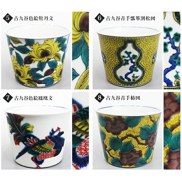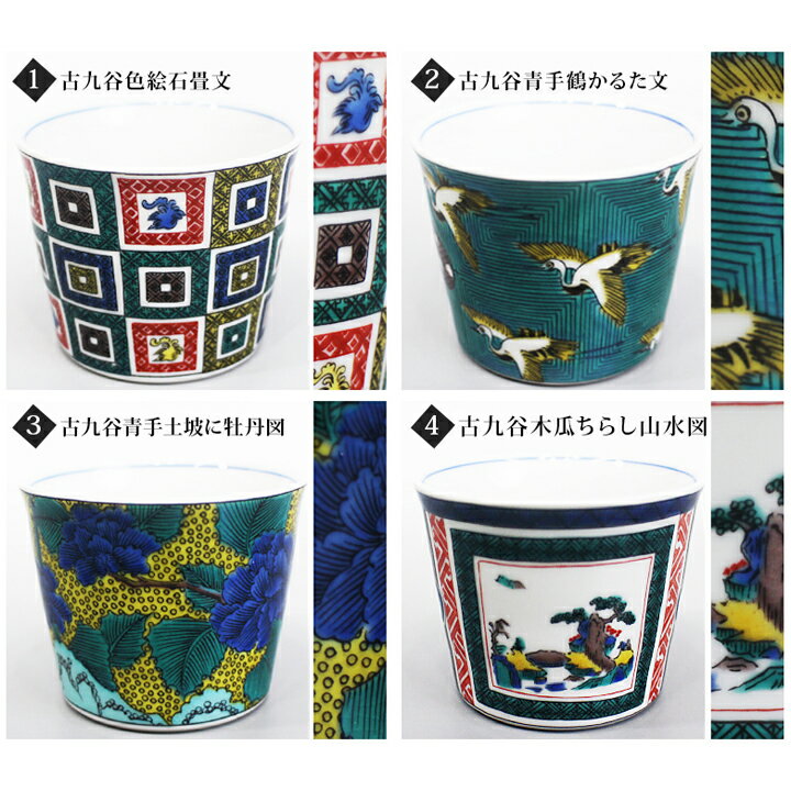 【九谷焼】フリーカップ 猪口 名品コレクション/青郊窯【九谷焼】フリーカップ 猪口 名品コレクション/青郊窯 商品説明 <九谷焼を代表する窯元である青郊窯の作品です> 九谷焼の色絵の名窯である青郊窯。独自に開発した、透明感があり、 かつ層の深みのある和絵の具が作品の魅力を引きたてています。 約360年の歴史で生まれた伝統柄を現代に調和させた、見て納得の商品。名品コレクションの名の通り、伝統の古九谷絵柄から、吉田屋絵柄までの12種類よりお選びいただけます。青郊窯の 商品は日用使いにも贈り物にもおすすめです。重厚感漂う優美な風合いをお楽しみください。 商品詳細情報 商品サイズ 径8×高さ6.5cm容量:200cc 箱の種類 紙箱 作家 青郊窯 青郊窯 (Seikougama) 大正初期 石川県能美当地にて開窯 昭和55年 耐酸和絵具の開発に成功 平成16年完全無鉛和絵具の開発に成功平成21年観光庁 魅力ある日本のおみやげコンテストで作品が韓国賞を受賞観光庁 魅力ある日本のおみやげコンテストで作品が銀賞を受賞平成22年観光庁 魅力ある日本のおみやげコンテストで作品がイギリス賞を受賞平成24年観光庁 魅力ある日本のおみやげコンテストで作品が韓国賞を受賞平成26年グルメ&ダイニングスタイルショーキッチン&ダイニンググッズ部門で作品が大賞を受賞平成27年観光庁「おみやげグランプリ」で作品が中国賞を受賞 九谷焼 世界に誇るジャパンクタニ伝統が生み出した五彩の美ジャパン・クタニとして、世界中から評価され、その名を馳せる九谷焼。約360年の歴史と伝統の技が、現代にも継承され、あまたの人々に長く愛され続けています。豪放華麗な色絵装飾を中心とした、独特な風格を誇る石川県金沢の伝統工芸。鮮やかに日常生活を彩ります。九谷焼の作品の魅力は、五彩(赤・緑・黄・紫・紺青)を基調とした、その独自の色彩が重なりあって生まれる重厚感にあります。北国ならではの力強い素地に、優美な色絵装飾を施し、作品を作り上げられています。手にとった時に感じる、和絵具のなめらかな質感もきっと楽しんでいただけることでしょう。独自な個性を放ちながら、生活に深く息づいていく伝統工芸品「九谷焼」。どうぞ末永くご愛用ください。 用途や贈る相手に合わせて、8種類のギフト包装紙からご選択いただけます。 熨斗のご要望があれば、お申し付けください。用途に合わせた熨斗をご用意いたします。 贈り物と共に、相手へメッセージを伝えるお手伝いをいたします。無記入のメッセージカードの同梱も可能です。 ご希望の方には、商品の大きさに合わせて、各種紙袋をご用意しております。 <陶らいふ>ギフト 行事一覧(こちらの商品は以下のような 贈り物 用途に適しています) 【おすすめ】伝統工芸品 石川県 金沢 和食器 九谷焼の贈答で"想い"を届ける 結婚祝い / 内祝い / 結婚式(引き出物) / 父の日 / 母の日 / 敬老の日 / 出産祝い / 成人祝い / 新築祝い / 還暦祝い / 快気祝い / 入学祝い / 就職祝い / 退職祝い / 引越し祝い / 独立・開業祝い / 誕生日祝い / 還暦祝い / 古希祝い / 喜寿祝い / 傘寿祝い / 米寿祝い / 金婚式 銀婚式 祝い / お中元 / お歳暮 /など その他「陶器 ギフト」として、 お土産 / 記念品 / お祝い返し / 粗品 /などとしても 人気 があります。