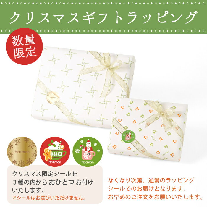 商品詳細 ●ギフトラッピングをご希望のお客様は、包装希望商品と一緒にご注文ください。 ギフトラッピングのみでの単品販売・発送はお受けできません。 ●ご希望のギフト形態をお選びください。 複数の場合は、ご希望の形態にて必要数をお買い上げいただき、詳細や内訳はご購入手続き・注文確認画面の「備考欄」にご記入ください。 ご指示のない場合は、ご注文商品をまとめてギフトBOXにお入れします。 ●ギフトラッピングに使用する包材の種類は、お選びいただいた商品の形状や大きさに合わせてホットマンがお選びいたします。 ※1つのギフトBOXにバスタオル6枚程度まで対応可能でございます。それ以上の数量やご不明点はご注文前にお問い合わせくださいませ。 ●ご希望の「のしの表書き」がない場合は店舗までお問合せください。できるかぎりご対応させていただきます。 ●店頭のラッピングとは使用する包材が異なる場合がございます。 ●のしとリボンは併用いたしません。両方を選択された場合、リボンを優先いたします。 ●ご依頼主様以外へお届けの場合は「お手提げ袋・納品書」は添付しておりません。ご入用の場合はご購入手続き・注文確認画面の「備考欄」にご記入ください。 ●タオルハンカチやハンドタオル、フェイスタオルなどの小さなサイズの贈り物には、ホットマンオリジナル無料ラッピングもご利用いただけます。 無料ラッピングをご希望の場合は、ご購入手続き・注文確認画面の「備考欄」にご記入ください。