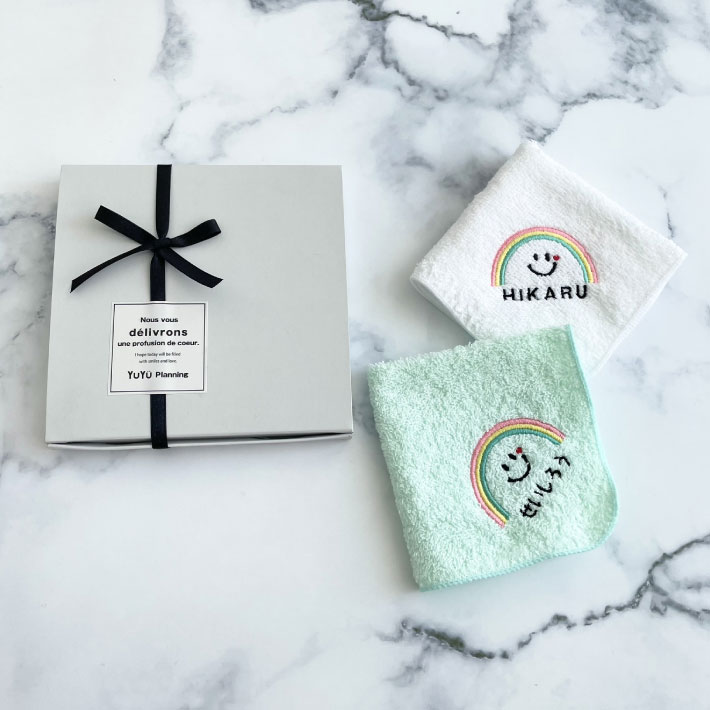 【名入れ 刺繍】名前入り ハンカチ《レインボー にこ》(名入れハンカチ ギフト プレゼント 誕生日 卒園 幼稚園 保育園 卒園ギフト 記念品 贈り物 ハンドタオル タオルハンカチ ハンカチタオル おしゃれ かわいい 雑貨 子供用ハンカチ 入園準備 虹 スマイル ニコちゃん) 49