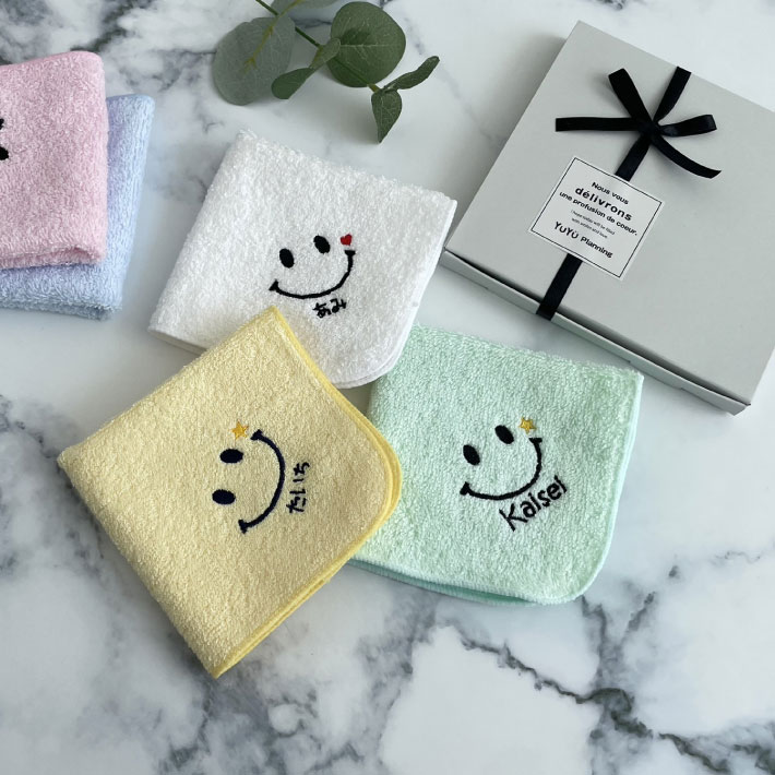 早割【名入れ 刺繍】名前入り ハンカチ《にこちゃん》(名入れハンカチ ギフト プレゼント 誕生日 卒園 幼稚園 保育園 卒園ギフト 記念品 贈り物 ハンドタオル タオルハンカチ ハンカチタオル おしゃれ かわいい 雑貨 子供用ハンカチ 入園準備 スマイル ニコちゃん) 30