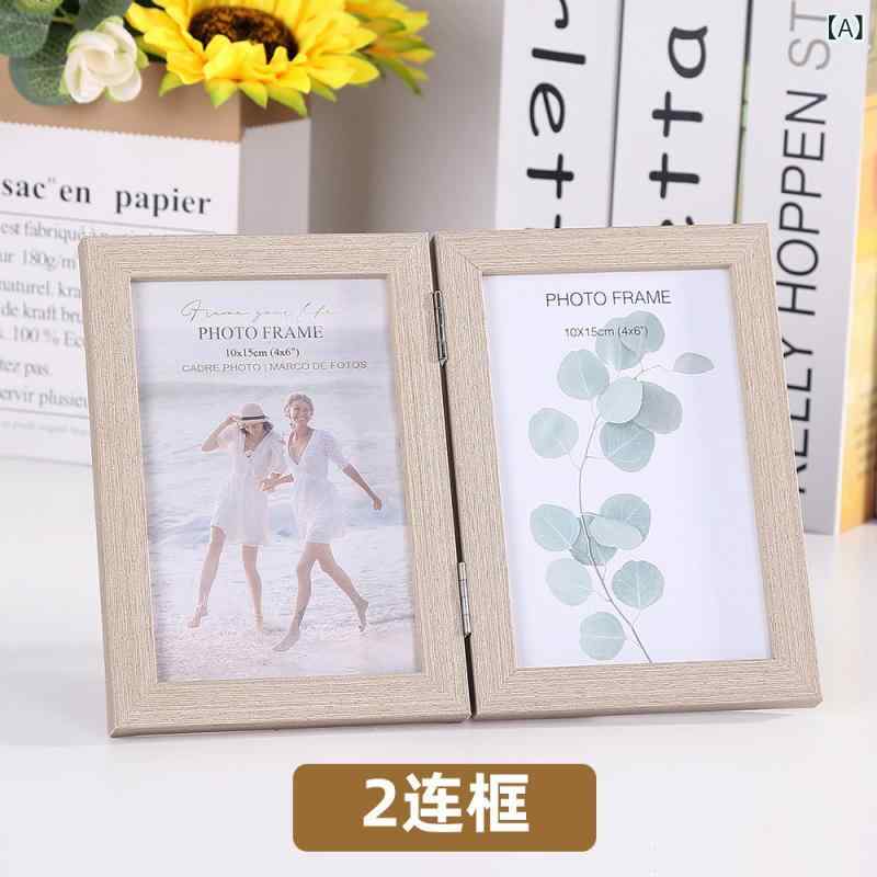 フォトフレーム 木製 卓上 壁掛け 写真立て 複数枚 2連 3連 4連 6連 長方形 スタンド ディスプレイ シンプル(x2)