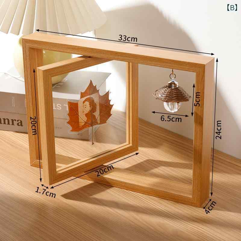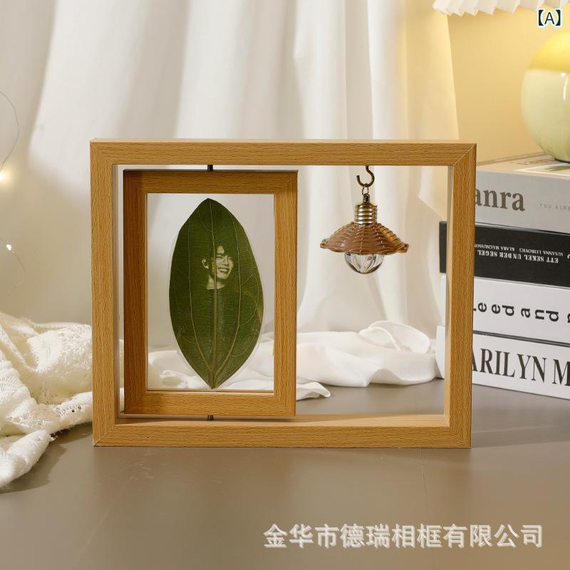 相框 フォトフレーム 写真立て 木製 卓上 壁掛け 兼用 インテリア雑貨 6寸 7寸 櫸木色 胡桃色 回転式 多機能 手作り