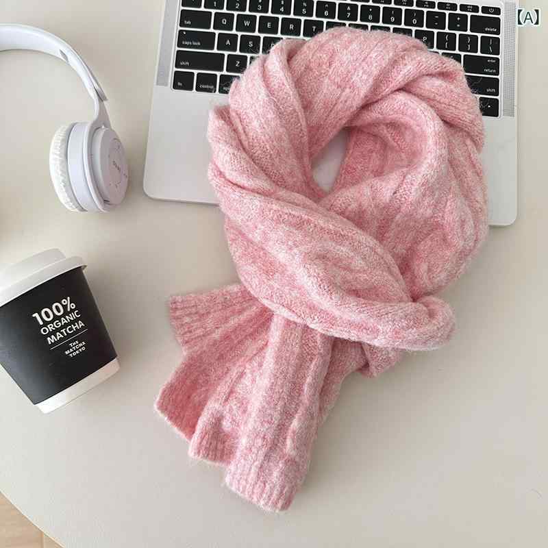 マフラー レディース ニット ウール ショール キャンディカラー ケーブル編み かわいい ペア 暖か 秋冬 韓国 ピンク パープル ブルー グレー ベージュ ブラック グリーン(x2)