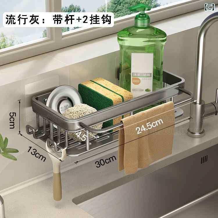 ラック キッチン収納 壁掛け式 スポンジ ラック 洗剤置き 水切りかご 排水ラック アルミ合金製 ブラック
