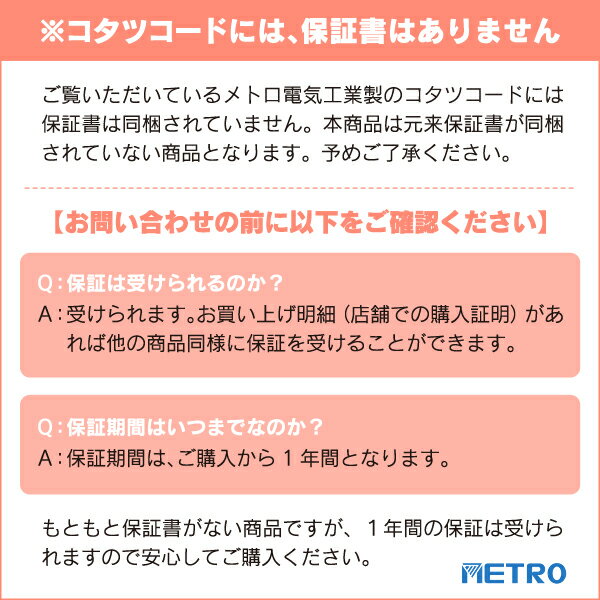 ※この電子コントローラーは、一部のヒーターユニットでの使用は推奨しておりません。交換用としてご使用の場合はメーカーサイト上の「こたつコード取替ナビ」をご確認ください ※他社メーカーのこたつ用ヒーターユニットには使用できません ※こたつ以外の電気器具には使用しないでください ※交流100Vで15A以上単独でご使用ください METRO メトロ電気工業 こたつコード3m メトロ製こたつヒーター 3ピン専用 コントローラー無段階温度調節 BC-KE21D(A) 【数量限定】 ●破損や劣化時の交換品として ●無段階温度調節の電子コントローラー ●業界唯一の安心構造 万が一、異極間ショートが発生しても瞬時に電流ヒューズが溶断し回路を切断するので、スパークによる発火の危険を低減します。 ●安心安全 2つの特徴 ・電源プラグに電流ヒューズを内蔵 ・ストレスに強い丸打ちコードタイプ ●3ピン専用コード(700Wまで 125V 7A) メトロ製こたつヒーター 3ピン専用コードです。こたつ以外の電気器具には使用しないでください。 【主な対応型番】 E01/E11/KE11/KE21/KE21D ET02/ET12/KET12/KET22(B)/KET22D/KEL32/KEC43 KET23(B)/KET23D 定格:AC125V 7A 電源コード:丸打ちコード 安全装置:電流ヒューズ コードの長さ:3m 【配送について】 沖縄ならびに離島配送不可、北海道など一部地域におかれましては、別途、追加送料等が必要な場合がございます。