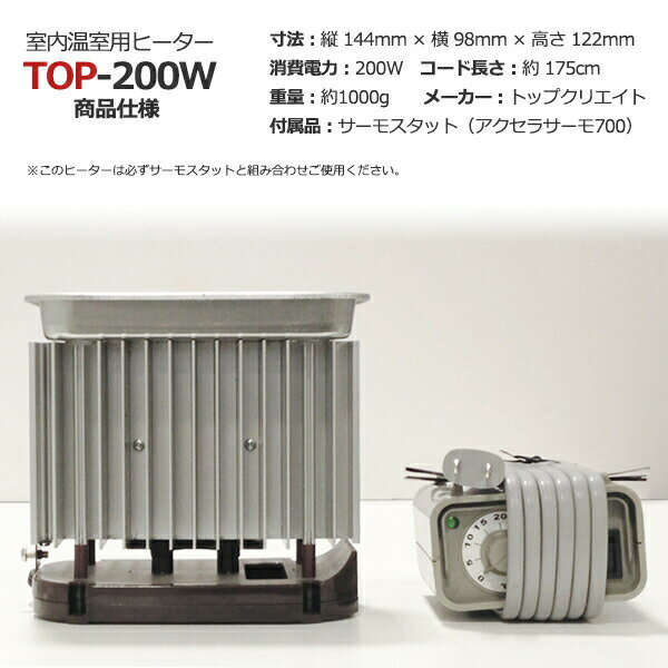 園芸用ヒーター サーモスタット付き TOP-200W 送料激安 TOPCREATE(トップクリエイト)