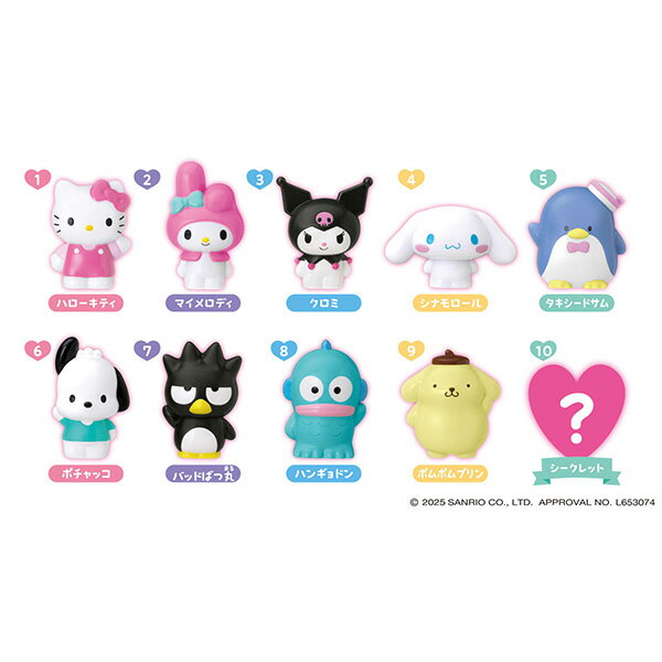 サンリオキャラクターズのかわいいミニフィギュア♪ かわいいハート型のカプセルにサンリオキャラクターズの人形が1体入り! ボールチェーンを通してバッグに付けたり持ち歩けます。 ハート型のカプセルに人形を入れられます。 全10種のうち、1種はシークレット!ブラインドパッケージで何がでるかはお楽しみ♪ ※別売りのパッとひろがる! おうちとおみせ カフェ付きと一緒に遊べます。 ※1BOX=10個入りの販売です。未開封1BOXで全種揃います。 発売日:2025年8月上旬 パッケージサイズ:190×150×150mm 使用電池:不要 対象年齢:3歳以上 メーカー:アガツマ 種類:おもちゃ 玩具