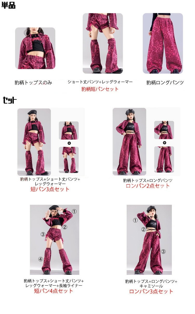 ピンク 豹柄 キッズ ダンス衣装 セットアップ 女の子 チア チアガール 韓国 k-pop トップス ファッション ヒョウ柄 カーゴパンツ サルエルパンツ レッグウォーマー ヒップホップ ジャズダンス 発表会 演出服 団体服 練習着 ストーリー系 ギャル