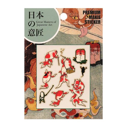 蒔絵シール【日本の意匠 金魚づくし】ケータイ スマホ iPhone カバー デコ ステッカー シール 歌川国芳 浮世絵 絵画