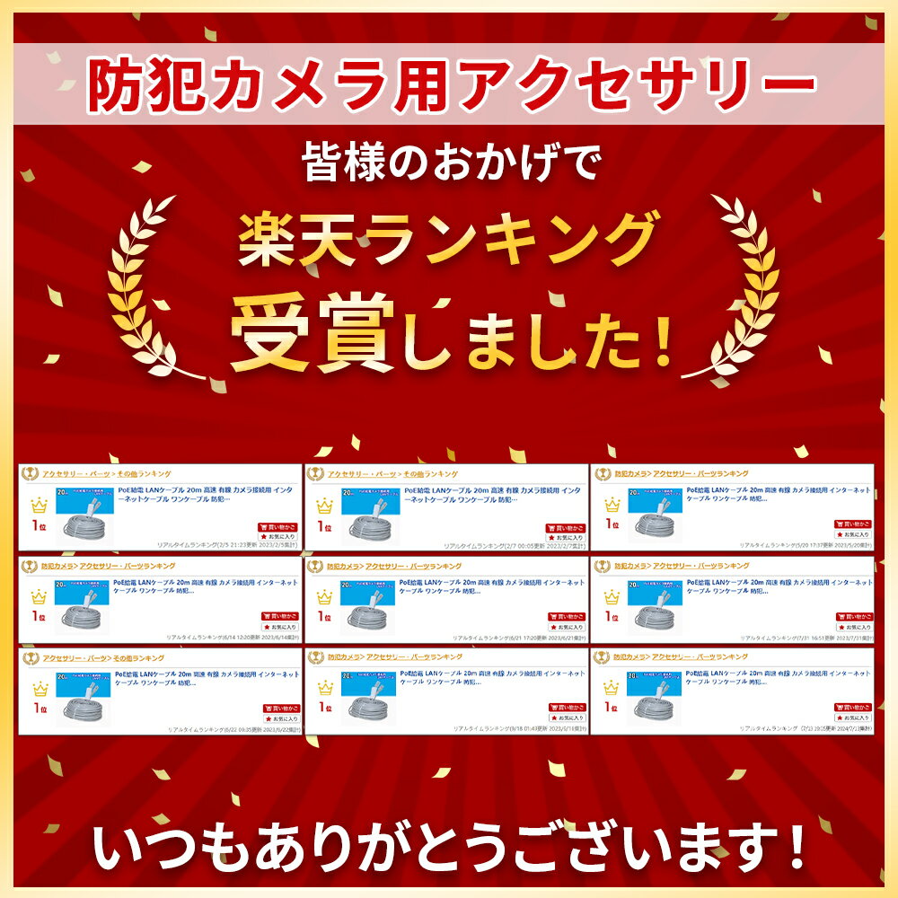 PoE給電 LANケーブル 20m 高速 有線 カメラ接続用 インターネットケーブル ワンケーブル 防犯 ホームセキュリティ 2024 防犯カメラ専門店東洋良品