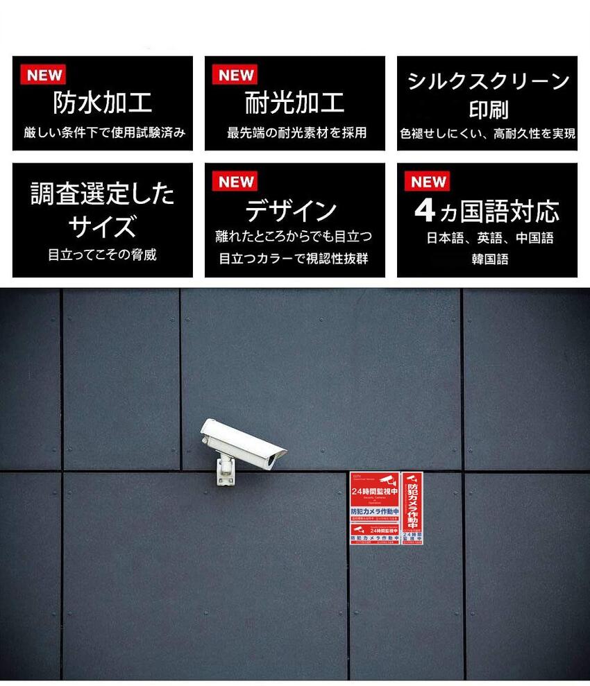 防犯カメラ シール 防犯ステッカー セキュリティ対策 防犯カメラ作動中 24時間 監視中 多言語版 日本語 英語 中国語 韓国語 ホームセキュリティ 防犯 防犯グッズ 窓 玄関 家 賃貸 送料無料