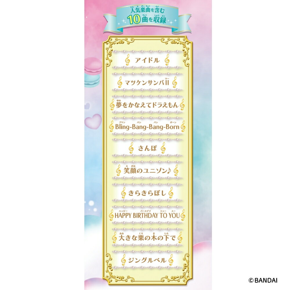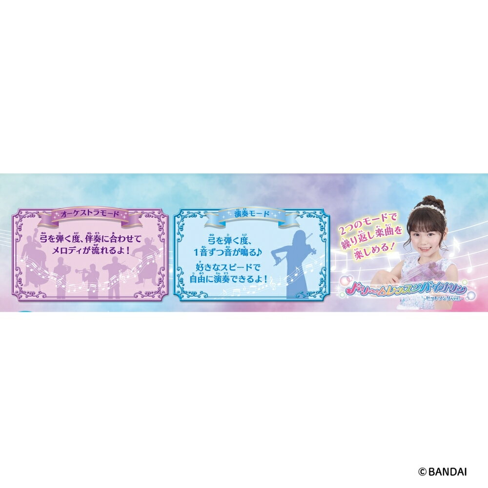 『ドリームレッスンシリーズ』より、「ドリームレッスンバイオリン ヒットソングver.」が登場!弓を弾くだけでスラスラ演奏出来ちゃう!「アイドル」「Bling-Bang-Bang-Born」など人気楽曲を含む充実の10曲収録!「オーケストラモード」と「演奏モード」の2つのモードで繰り返し楽曲を楽しめます。[使用電池]・単4乾電池×3本(別売り)(本商品に付属するもの以外すべて別売りです。)・バイオリン本体…1個・弓…1本こちらの商品は実店舗から入荷・発送しておりますため、パッケージ状態や、梱包状態が商品ごとに異なる場合がございます。一部商品に商品管理ラベルが添付されている場合がございます。※お支払い方法はご利用ガイドの「お支払い方法・お支払いについて」をご確認ください。※ご注文確定後の注文内容の変更、キャンセルはお受けしておりません。※対象年齢がある商品については目安となっております。※実際の商品と画像は若干異なる場合がございます。対象年齢 (歳~):3.0 - 6.0重量 (g):1 KILOGRAM著作権:(C)BANDAIbandai,#202511120001,#2025112801電池:電池別売 単4電池×3.0