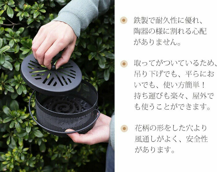 商品詳細 商品情報 ●商品名:蚊取り線香ホルダー ●素材:鉄製 ●形状:円形 ●カラー:ブラック ●重さ:約390-430g ●セット内容:蚊取り線香ホルダーのみ ●生産国:中国 関連キーワード ●不良の場合、注文番号をご記載の上、メールにてご連絡いただければ対応させていただきます。 ●本製品を分解や修理、改造をしないでください。 ●写真撮影の照明や、画像処理の加減により実物の色味と若干異なる場合もございます。あらかじめご了承の上ご購入下さい。 ●生産時期によって、商品の仕様や外装デザインがご通知なく変更される可能性がございますので、予めご了承のうえ、ご注文ください。 ●地域によっては配送業者が異なる場合がございます。 メーカー希望小売価格はメーカーサイトに基づいて掲載しています