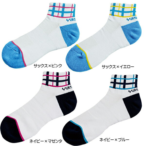 【Yasaka】ヤサカ E-163 プレイドYソックス [サックス×ピンク/サックス×イエロー/ネイビー×マゼンタ/ネイビー×ブルー] サイズ:M(23〜25cm)、L(25〜27cm)【卓球用品】卓球ソックス/卓球用靴下【RCP】