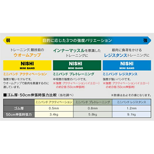 【NISHI】ニシ・スポーツ NT7930E/NT7930F/NT7930G ミニバンド アクティベーション【イエロー/グリーン/ブルー】[インナーマッスルトレーニング用品/バランス能力強化グッズ/ウオームアップ用トレーニングツール/体幹トレーニング/バランス強化]【RCP】