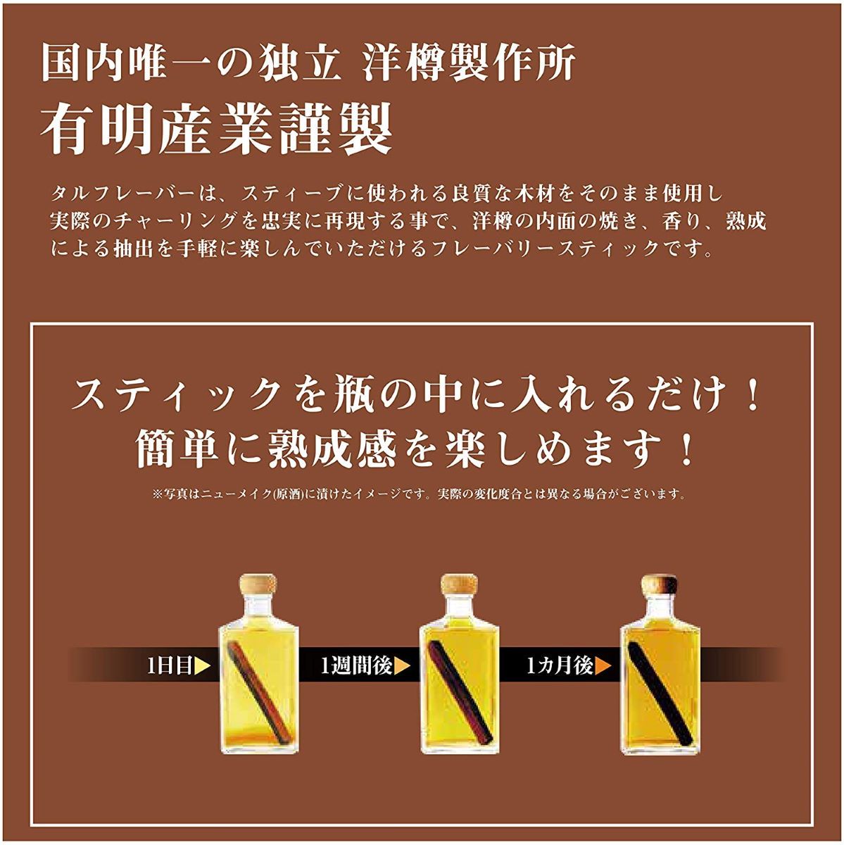 タルフレーバーはスティーブに使われる良質な木材をそのまま使用し、実際のチャーリングを忠実に再現する事で洋樽の内面の焼き、香り、熟成による抽出を手軽に楽しんで頂けるフレーバリースティックです。スティックを瓶の中に入れるだけ!簡単に熟成感を楽しめます!※複数回ご利用頂けますが、徐々に効果は薄まります。【内容】ホワイトオーク:バーボン樽やシェリー樽などとして世界で最も使用されているのがこのアメリカンホワイトオークになります。強めのチャーリングを施す事でバニラやココナッツのようなフレーバーを生み出します。ヤマザクラ:桜餅に使われるオオシマザクラの塩漬けにされた葉の香りのように控えめで和を感じる甘いフレーバーを醸し出します。ミズナラ:ジャパニーズウイスキーの世界的評価でそのポテンシャルが認識されたジャパニーズオーク:ミズナラは長期熟成により伽羅や白檀などの香木のような芳香をもたらし、含有するバニリンとタンニンのバランスが良く短期熟成でもまとまりのある上品な仕上がりが期待できます。クリ:スパニッシュオークなどと比較しタンニン分が少なく、熟成が進むにつれて特有のほくほくとした甘みをお愉しみ頂けます。キッチン用品・食器・調理器具 > ワイン・バー・酒用品 > その他 Taru Flavor 4種×各1本セット ホワイトオーク ヤマザクラ ミズナラ クリ 各1本 Taru Flavor 4種 ホワイトオーク ヤマザクラ ミズナラ クリ タルフレーバーはスティーブに使われる良質な木材をそのまま使用し、実際のチャーリングを忠実に再現する事で洋樽の内面の焼き、香り、熟成による抽出を手軽に楽しんで頂けるフレーバリースティックです。スティックを瓶の中に入れるだけ!簡単に熟成感を楽しめます!※複数回ご利用頂けますが、徐々に効果は薄まります。【内容】ホワイトオーク:バーボン樽やシェリー樽などとして世界で最も使用されているのがこのアメリカンホワイトオークになります。強めのチャーリングを施す事でバニラやココナッツのようなフレーバーを生み出します。ヤマザクラ:桜餅に使われるオオシマザクラの塩漬けにされた葉の香りのように控えめで和を感じる甘いフレーバーを醸し出します。ミズナラ:ジャパニーズウイスキーの世界的評価でそのポテンシャルが認識されたジャパニーズオーク:ミズナラは長期熟成により伽羅や白檀などの香木のような芳香をもたらし、含有するバニリンとタンニンのバランスが良く短期熟成でもまとまりのある上品な仕上がりが期待できます。クリ:スパニッシュオークなどと比較しタンニン分が少なく、熟成が進むにつれて特有のほくほくとした甘みをお愉しみ頂けます。 2