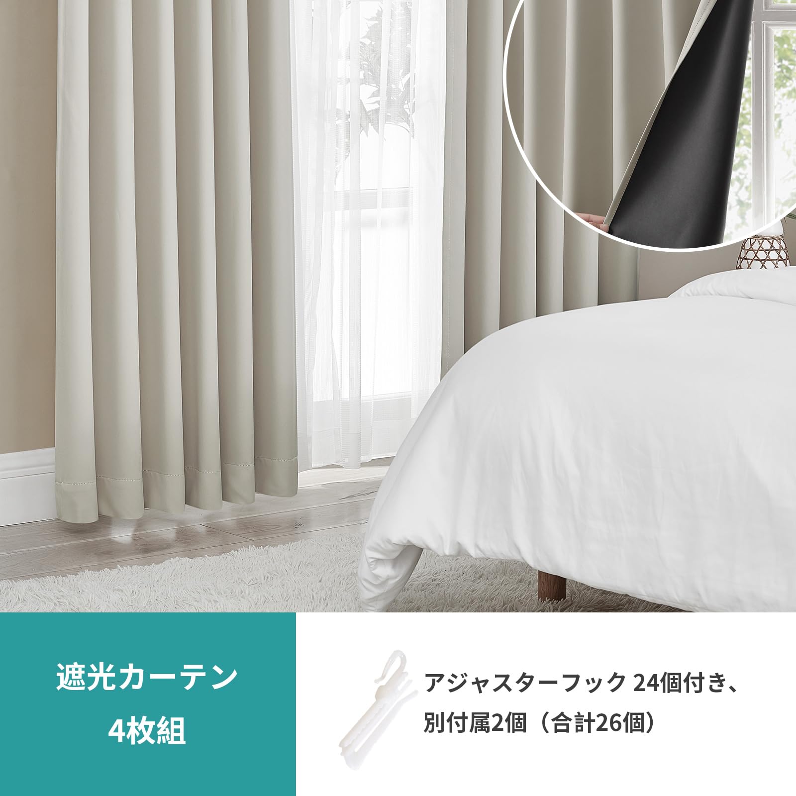 【送料無料】Hansleep カーテン 4枚セット 遮光カーテン 1級遮光 ベージュ 幅100cm丈178cm 断熱 防寒 防音 省エネ 無地 洗える 寝室 リビング用 (ドレープカーテン2枚・レースカーテン2枚)