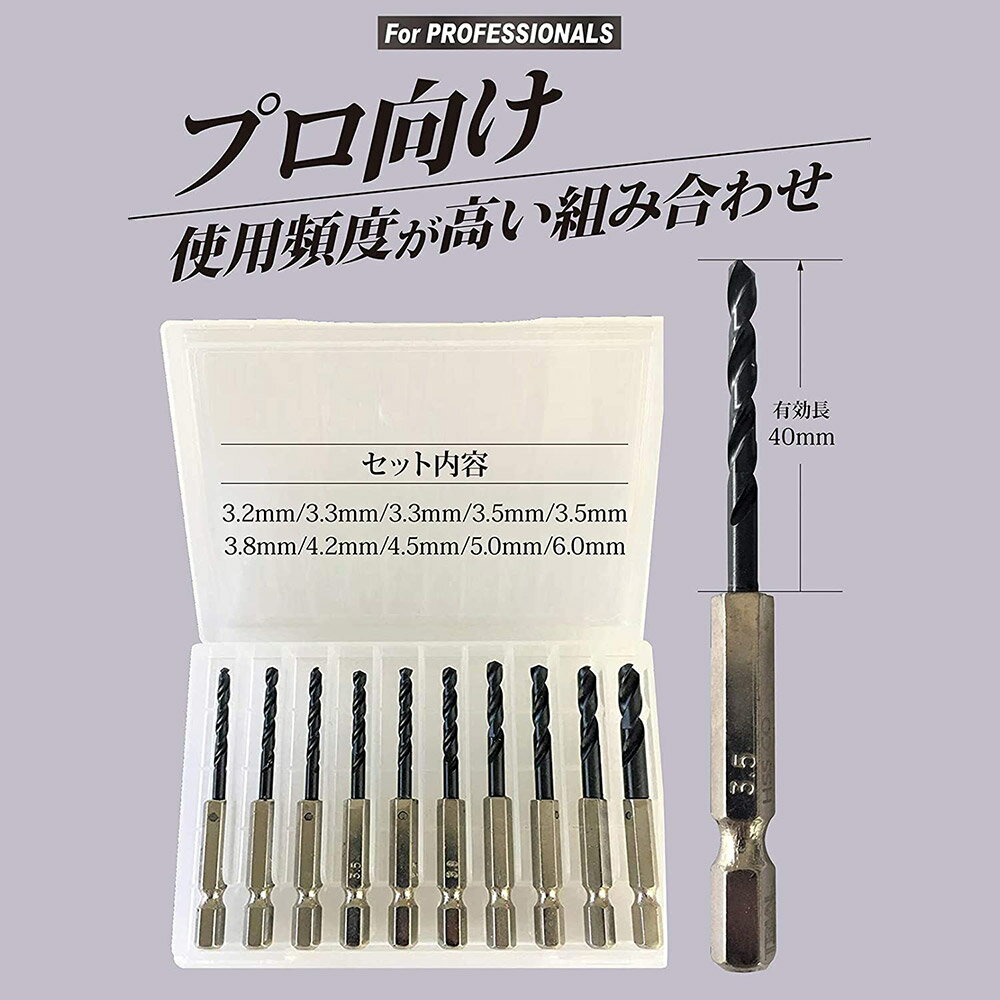 ドリルセット 3.2 3.3 3.4 3.5 3.5 3.8 4.2 4.5 5.0 6.0mm 10本組 六角軸 インパクト用 コバルトドリル 金属 鉄 ステンレス キリ ドリル セット 鉄工ドリル 穴あけ 鉄鋼用 鉄鋼ドリル 鉄鋼用ドリルセット ドリルビット 工具 DIY M35