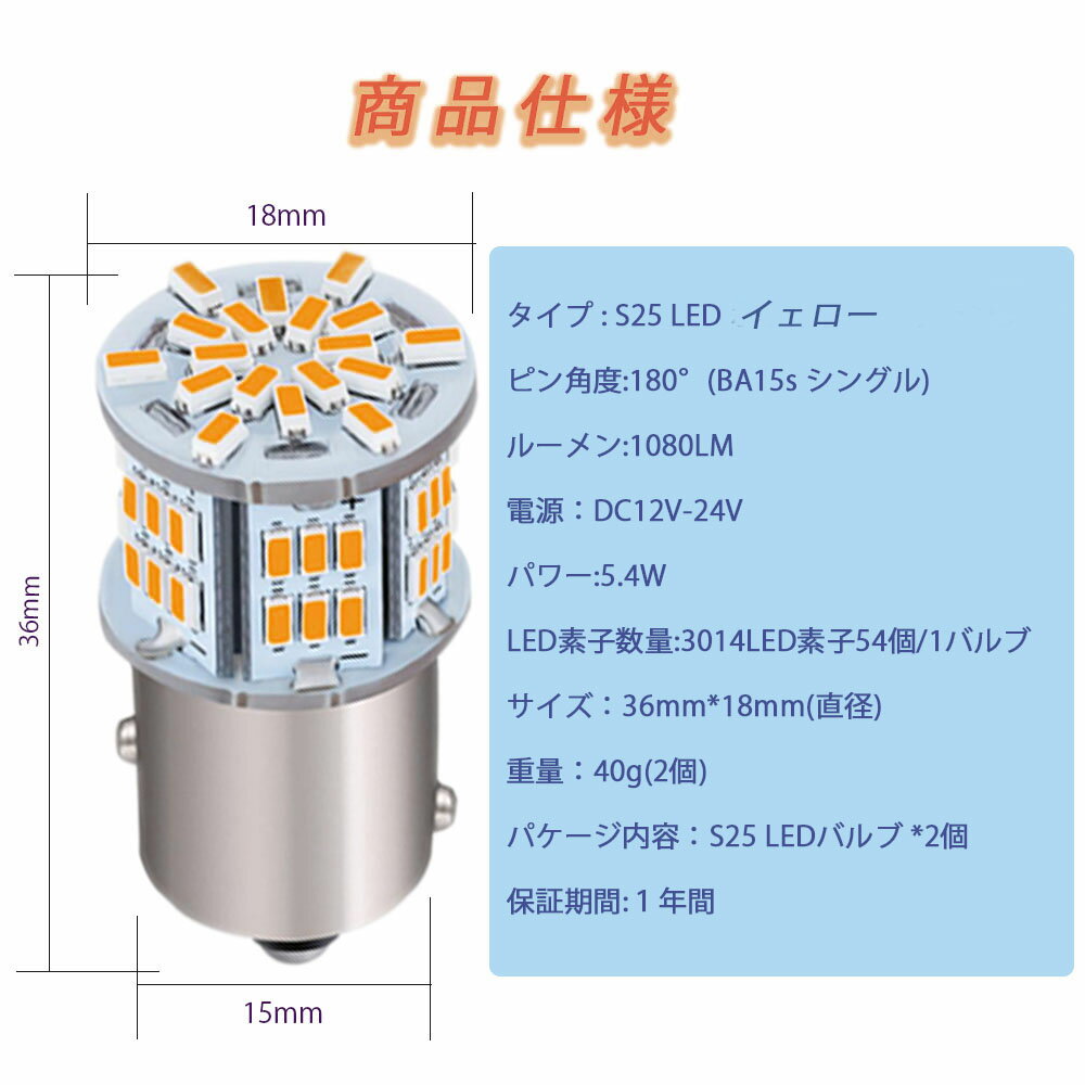 S25 シングル球 12V-24V 超高輝度LED アンバー オレンジ ピン角180度 (P21W 1156 G18 BA15S) 54連 LEDバルブ 3014SMD 汎用 3000-3500K 車用トラック用品 サイドマーカー ウインカー バックランプ ポジション LED ライト 10個セット