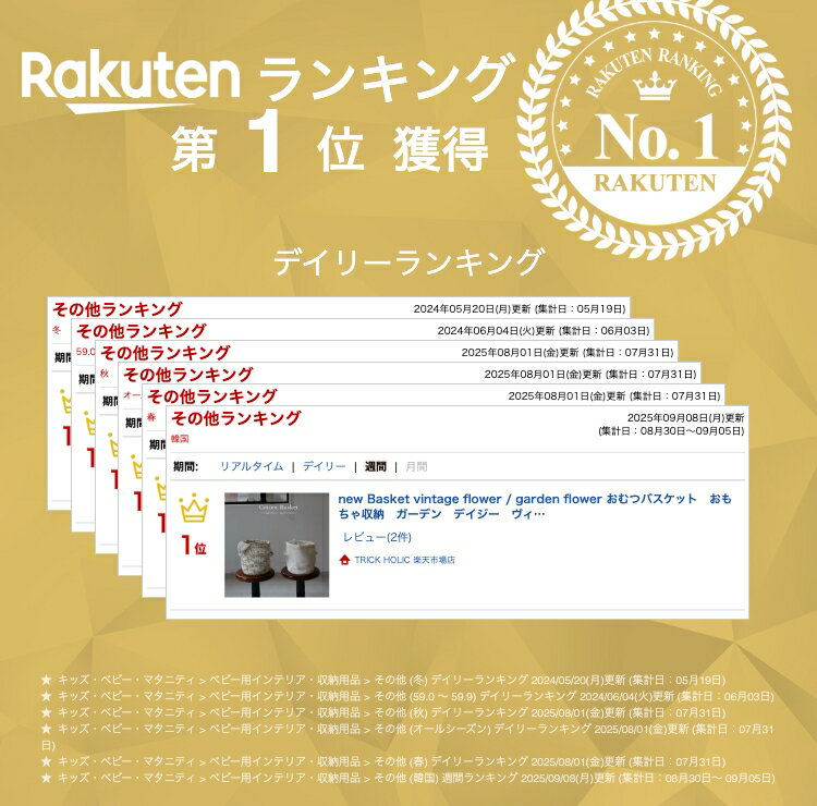 【11/19 PM4時頃再入荷】new Basket vintage flower / garden flower おむつバスケット おもちゃ収納 ガーデン デイジー ヴィンテージ トリックホリック TRICK HOLIC trick holic 本場韓国製オリジナル【宅配便のみ】