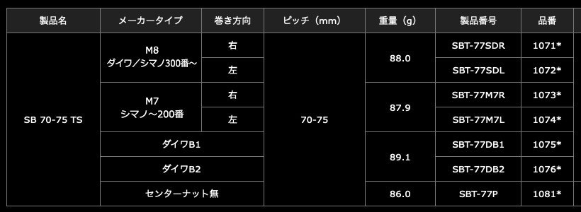 【送料無料】【お取り寄せ】リブレ(メガテック) SB 70-75 TS(エスビー 70-75 TS)【センターナット付】ベイト用