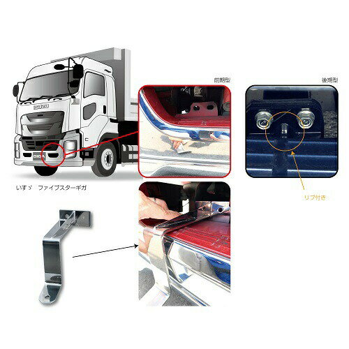 商品名 フォグランプ取付けステー ファイブスターギガ用 適合 ■いすゞ大型ファイブスターギガ>>平成27年11月-現行 材質 ■ステンレス製 付属品 ■アタッチメント板×2(高床車用部材) ナットスペーサー×4(後期型車用部材) 取付けボルト/ナット/ワッシャー スチール製 コメント ■対策バンパー取付けブラケットを利用して取り付けます。穴あけ加工を必要とせず低床・高床、前期・後期問わずご利用いただけます。ブレ対策として補強と合わせ、ステンレス製ステーの厚さは6mm。左右セット。 ご注意事項 ■年式が2023年4月以降のトラクター(ドア横タイプ)は不可となります。※画像を必ずご確認ください。■欠品・廃番商品の反映にはタイムラグがあります。ご了承下さい。 備考 こちらの商品は下記項目で検索されていますフロント トラック led フォグランプステー 取り付け 12v イノウエ 挟む バンパー セット パーツ ブラック ライト 車 用品 灯 パイプ ステンレス バイク プロフィア 外装 ステー 型 ランプ 避ける ふす 丸 フォグランプ 汎用 r ジェット 挟み込む フォグ カスタム あとづける 折れにくい 24v 厚い l ブラケット