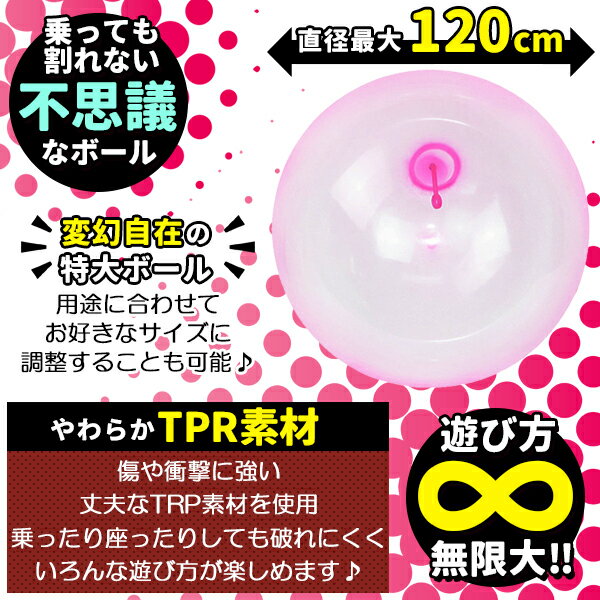 バブルボール 特大 120cm 割れない 巨大 風船 水風船 ビーチボール 120 大 大きい 乗れる 繰り返し 子供 子ども 水遊び おもちゃ 玩具 オモチャ 公園 アウトドア 空気入れ インフレータブルボール ピンク