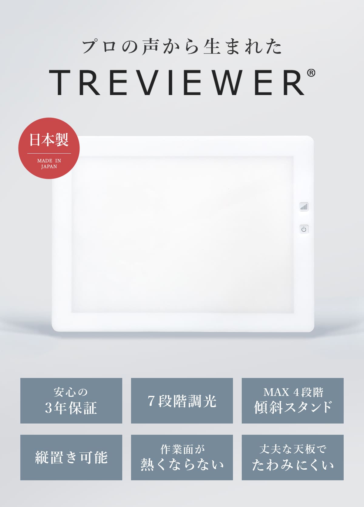【日本製】 トレース台 トレビュアー A4 保護シート付 ホワイト 薄型 7段階調光 3年保証 A4-500-W-01 ライトボックス ライトボード ライトテーブル トライテック