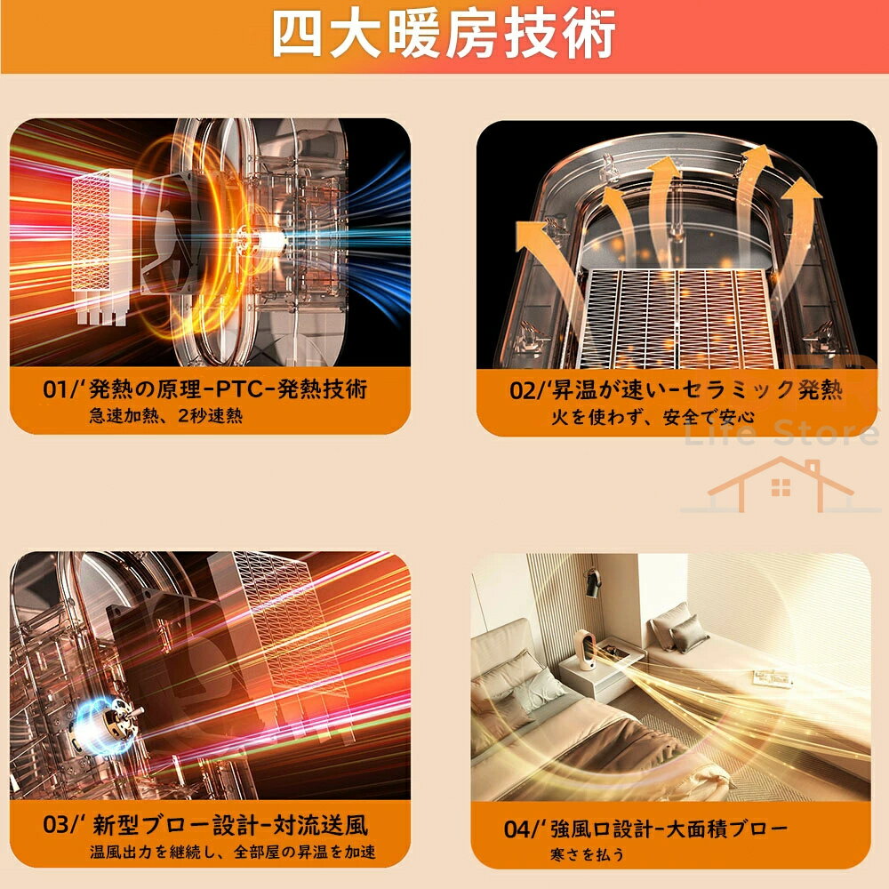商品説明【仕様】※ご注意:ヒーターの温風を表示ために、画像にオレンジ光を使ってますが、温風のイメージ画像です。実物は発熱の時にオレンジ光になりません。型番:E68/E68S重量:1.21kg幅:145mm高さ:350mm奥行き:145mm消費電力:1200W【商品説明】1、10℃~50℃知能恒温・メモリー機能・省エネ2、転倒OFF・過熱保護・環境温度センサー・切忘れ防止3、1200Wパワフル4、遠距離リモコン操作・30/60/90min 切タイマー【この機能はE68のみ】5、正規品【使い方】1.電源ブラグを コンセントに差し込む。2.裏側の電源スイッチを推して、電源を入れる。 ・電源を入れると、LEDディスプレイの下部に赤線が点灯します。3.モ一ドを切り替える。 ・モ一ドボタンを押すたびに、ヒ一タ一の送風モードが切リ替わります。 ・切リタイマ一を設定した場合、設定した時間後に運転を停止し、電源が切れます。【パゲージ内容】ヒーター本体×1 リモコン×1 取扱説明書×1 包装箱×1商品説明【仕様】※ご注意:ヒーターの温風を表示ために、画像にオレンジ光を使ってますが、温風のイメージ画像です。実物は発熱の時にオレンジ光になりません。型番:E68/E68S重量:1.21kg幅:145mm高さ:350mm奥行き:145mm消費電力:1200W【商品説明】1、10℃~50℃知能恒温・メモリー機能・省エネ2、転倒OFF・過熱保護・環境温度センサー・切忘れ防止3、1200Wパワフル4、遠距離リモコン操作・30/60/90min 切タイマー【この機能はE68のみ】5、正規品【使い方】1.電源ブラグを コンセントに差し込む。2.裏側の電源スイッチを推して、電源を入れる。 ・電源を入れると、LEDディスプレイの下部に赤線が点灯します。3.モ一ドを切り替える。 ・モ一ドボタンを押すたびに、ヒ一タ一の送風モードが切リ替わります。 ・切リタイマ一を設定した場合、設定した時間後に運転を停止し、電源が切れます。【パゲージ内容】ヒーター本体×1 リモコン×1 取扱説明書×1 包装箱×1