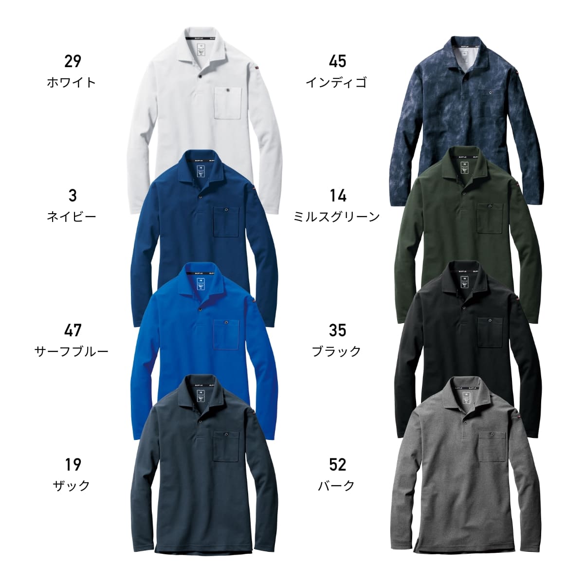 シャツ 無地 BURTLE バートル 長袖 ポロシャツ ユニセックス 665 男女兼用 メンズ レディース 男性用 女性用 作業服 UVカット ストレッチ 吸汗 速乾 ドライ 消臭 ホワイト ブラック ブルー グレー ミルスグリーン インディゴ バーク ザック SS S M L LL XL 3L 4L 5L 6L