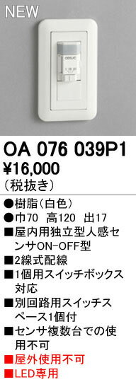 OA076039P1屋内用独立型センサ 壁面埋込型(内玄関・廊下専用) 人感センサ ON-OFF型オーデリック 照明器具部材