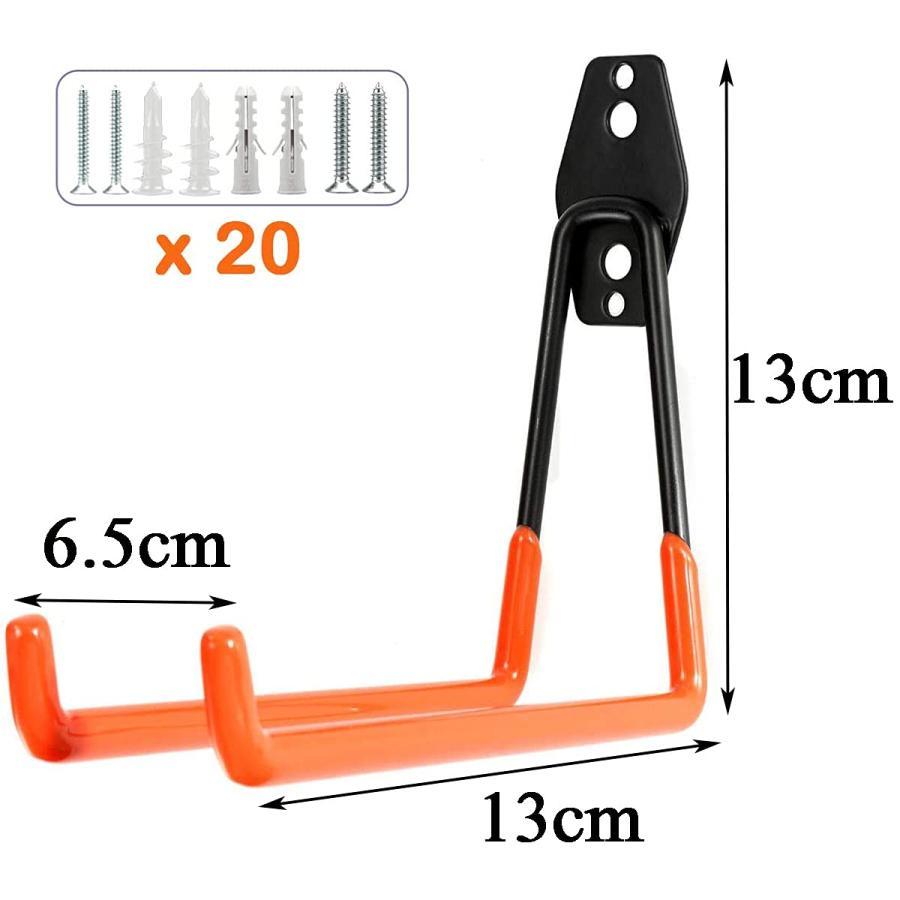 ガレージ用フック20個 ツールフック ガレージ収納フック 滑り止め加工 物掛け フック 壁面取付工具 ダブルフック 強力な耐荷重 ガレージ ストレージハンガー 頑