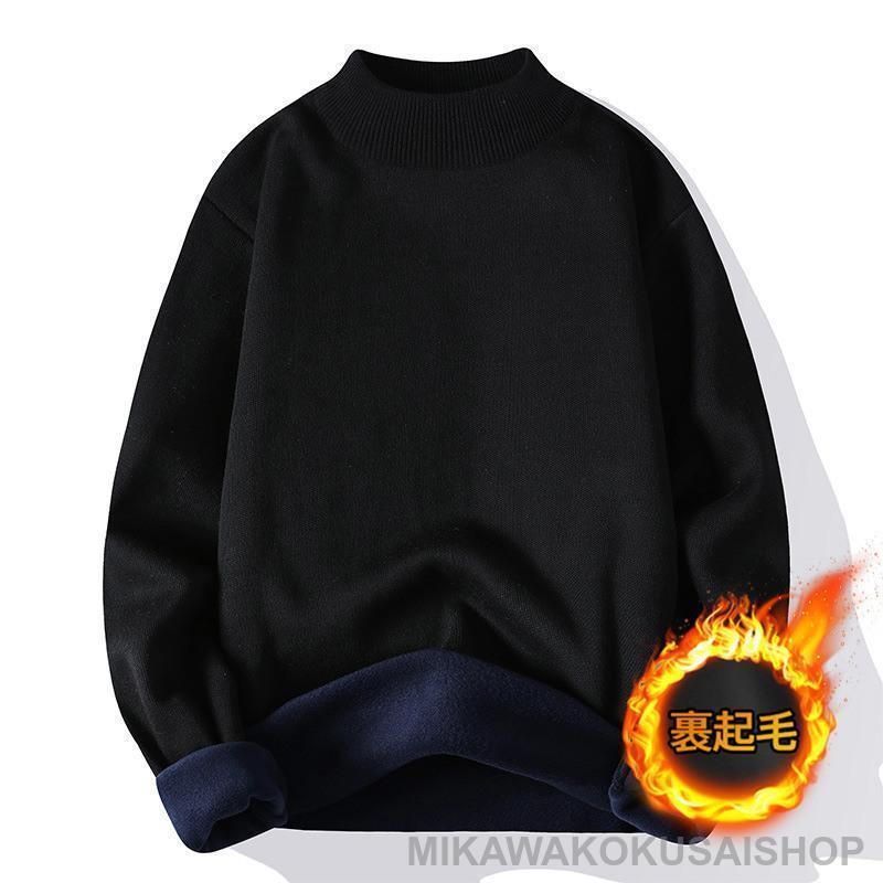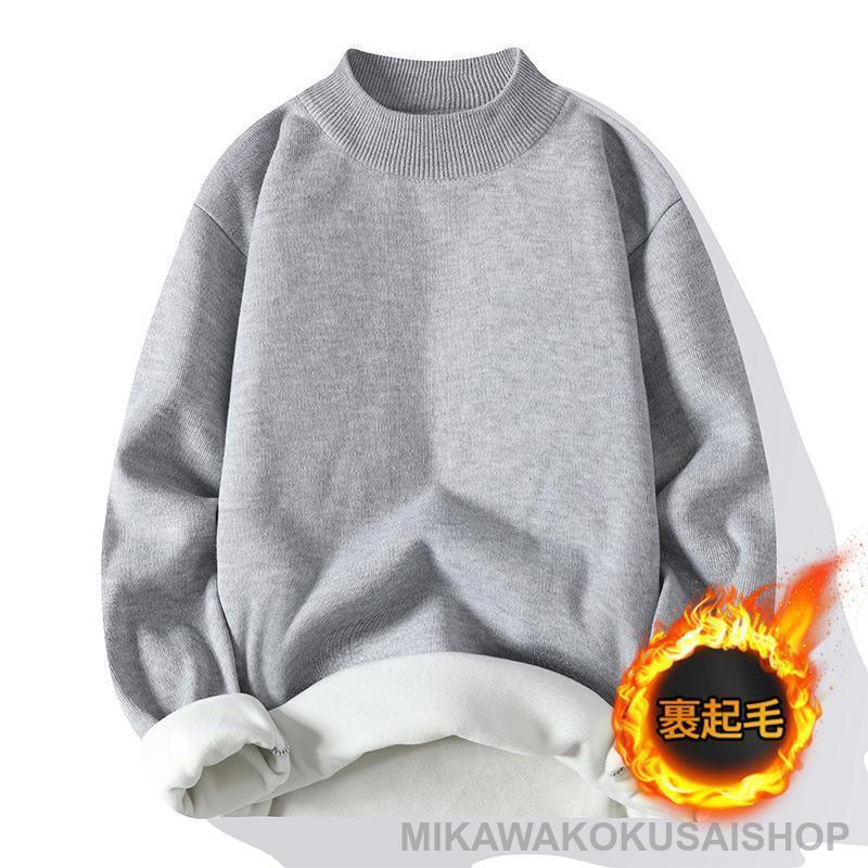 ニットセーター メンズ 裏起毛 裏ボア 厚手 丸首 クルーネック 長袖 ニット トップス ゴルフウェア 無地 秋冬 防寒 保温 暖かい ビジネス