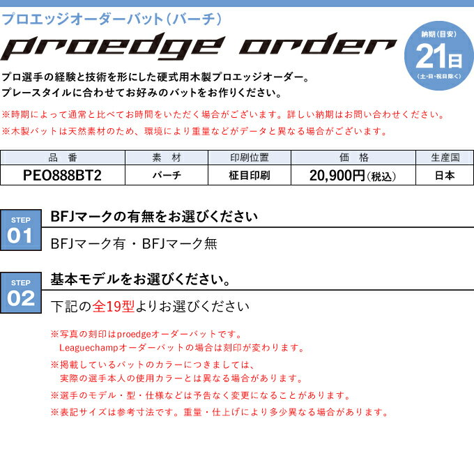 <受注生産>エスエスケイ(SSK) PEO888BT2 硬式用木製オーダーバット バーチ プロエッジ 硬式バット 木製バット proedge 10%OFF 野球