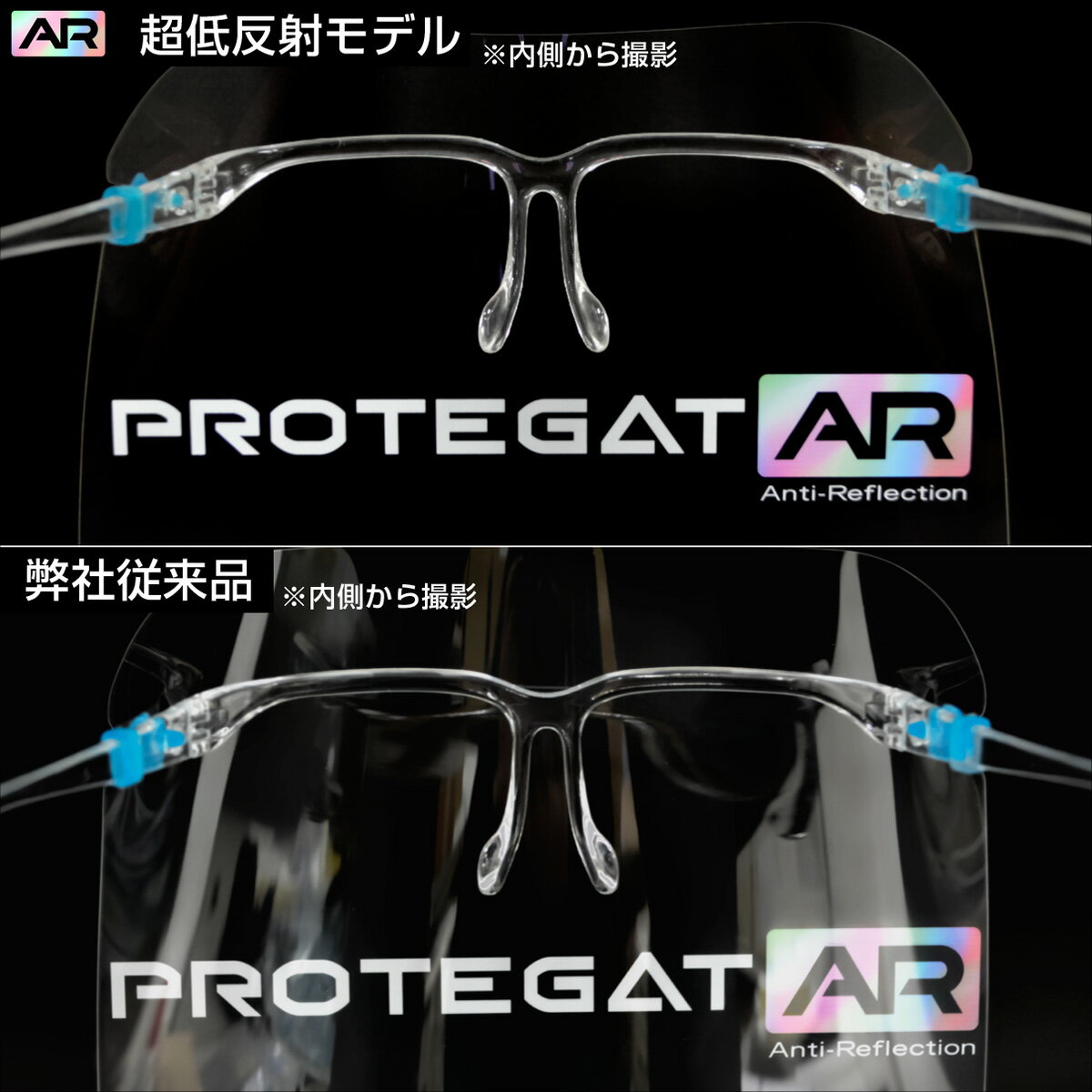超低反射 フェイスシールド メガネ 1セット 日本製 簡易梱包 透明 自社工場 低反射 反射防止 眼鏡 マスク 感染対策 感染防止 飛沫対策 飛沫防止 視界 表情 インフルエンザ コロナ コロナ対策 デルタ オミクロン 医療 病院 作業用 工場 コンサート 舞台