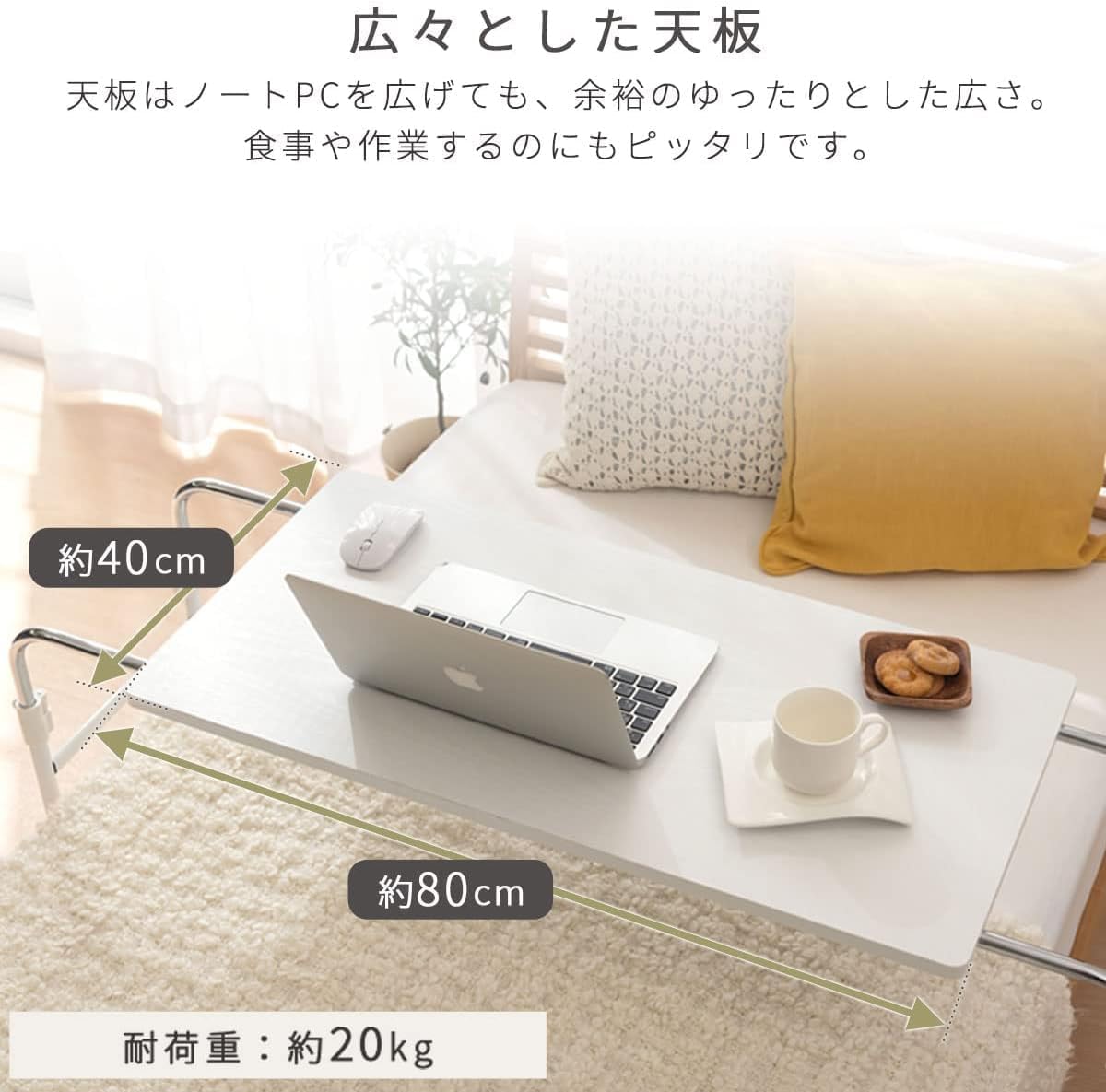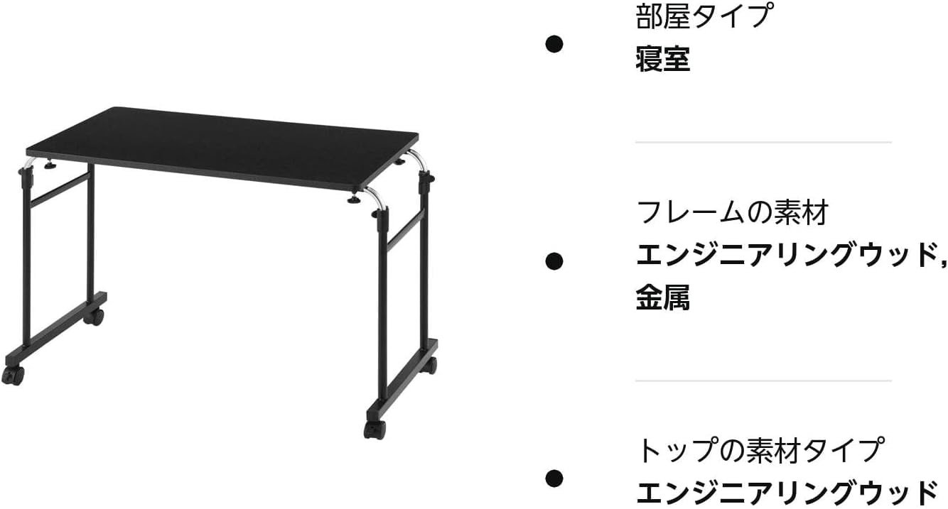 ベッドテーブル オーバーベッドテーブル キャスター付き 高さ調節 伸縮 昇降式 ウォールナット 120*46CM 伸縮式ベッドテーブル キャスター付 高さ・幅調節可能