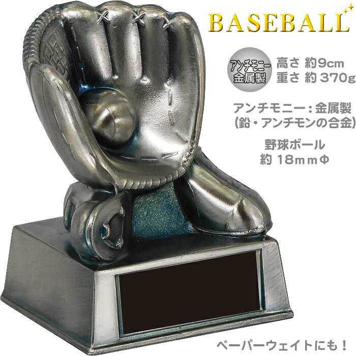 商品名 トロフィー 野球 ブロンズ アンチモニー製(金属) 商品番号 B004095A-BASEBALL イベント 種目 トロフィー 野球 ブロンズ 優勝 トロフィー 野球 グッズ トロフィー ベースボール 野球大会 野球部 卒業記念品 名入れ 1個から 野球 卒団記念品 野球 卒部 卒団 卒業 部活 引退 記念品 卒業記念大会 野球 コーチ 先生 監督 プレゼント 体育祭 球技大会 MVP 表彰 軟式野球 硬式野球 最優秀選手賞 ホームラン王 打点王 首位打者賞 打撃賞 最優秀投手賞 監督賞 野球ボール 野球グローブ 野球スパイクシューズ スポーツ アウトドア 野球 ソフトボール グローブ ミット ホビー パーティー イベント用品 賞品 景品 トロフィー カップ 野球 ペーパーウェイト 野球の日(8月9日) 商品説明 野球グローブ 野球ボール 野球スパイクシューズ 金属製 ブロンズトロフィー です。 野球大会に!優勝 最優秀選手賞 最優秀投手賞 MVP などの 野球表彰 に!卒業 卒団 記念品 にも! 文字彫刻名入れ 文字彫刻代は無料です。こちらの商品は、文字数は30字を推奨しております。 (1行約10文字までを3行までがおすすめです。)※プレートの文字彫刻内容は商品を買い物かごに入れ、 ご注文画面に進んだ後にある【※備考】欄にご記入ください。 カラー シルバー サイズ 高さ約9cm 重さ約370g プレート 【AL-9】サイズ:縦17×横45mm【トロフィー 野球 ブロンズ 優勝 トロフィー 野球 グッズ トロフィー ベースボール 野球大会 野球部 卒業記念品 名入れ 1個から 野球 卒団記念品 野球 卒部 卒団 卒業 部活 引退 記念品 卒業記念大会 野球 コーチ 先生 監督 プレゼント 体育祭 球技大会 MVP 表彰 軟式野球 硬式野球 最優秀選手賞 ホームラン王 打点王 首位打者賞 打撃賞 最優秀投手賞 監督賞 野球ボール 野球グローブ 野球スパイクシューズ スポーツ アウトドア 野球 ソフトボール グローブ ミット ホビー パーティー イベント用品 賞品 景品 トロフィー カップ 野球 ペーパーウェイト 野球の日(8月9日)】 野球グローブ 野球ボール 野球スパイクシューズ 金属製 ブロンズトロフィー です。 優勝 最優秀選手賞 最優秀投手賞 MVP などの野球表彰に! 卒業記念品 卒団記念品 部活引退記念品 にも! 文字彫刻 名入れ 無料!