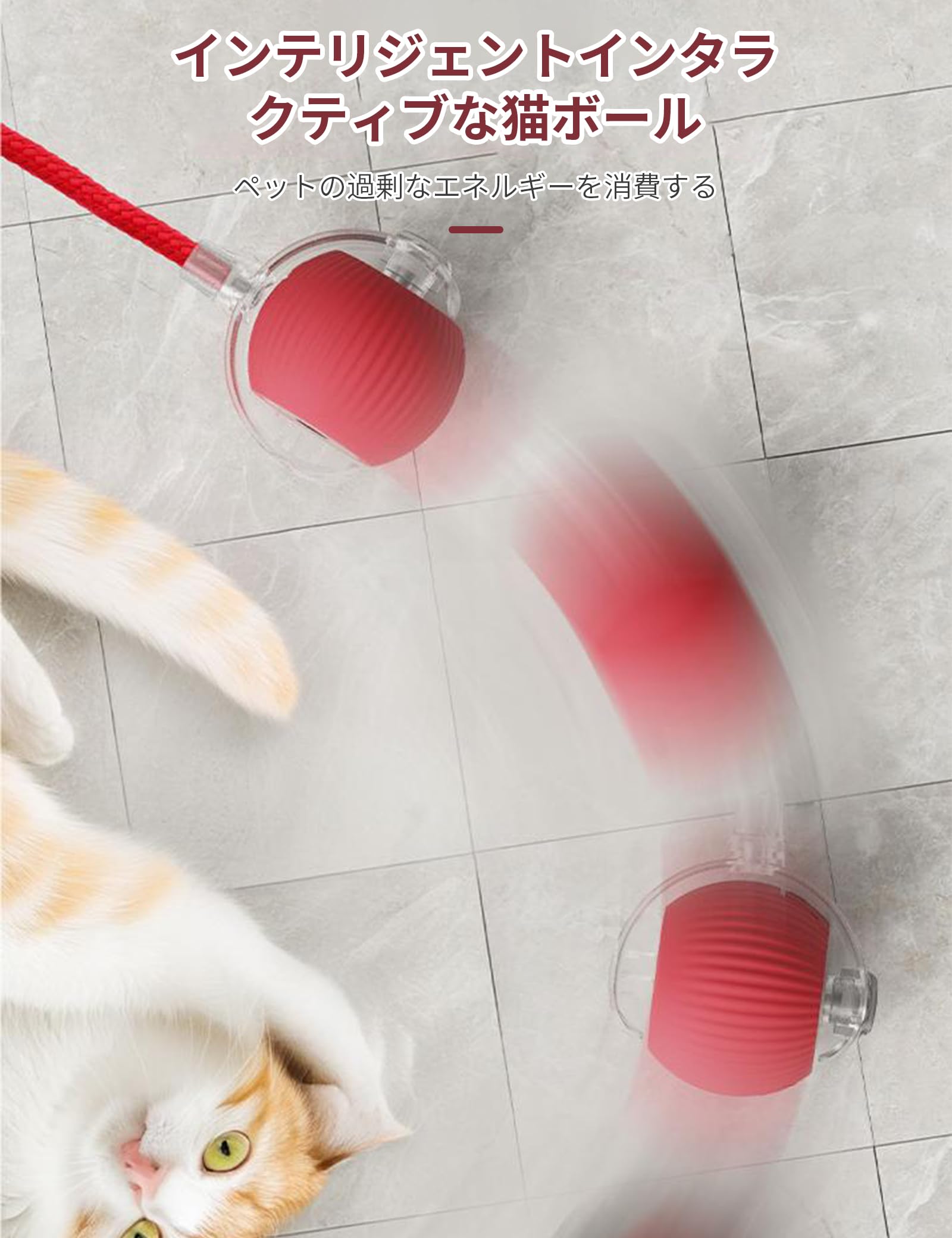 【即納】猫ボール 猫玩具 自動猫おもちゃ 電動自動回転 猫のエクササイズボール 光る 長い尾付き インタラクティブ ペットおもちゃ ストレス解消 運動不足解消 USB充電式 猫の狩猟本能を刺激