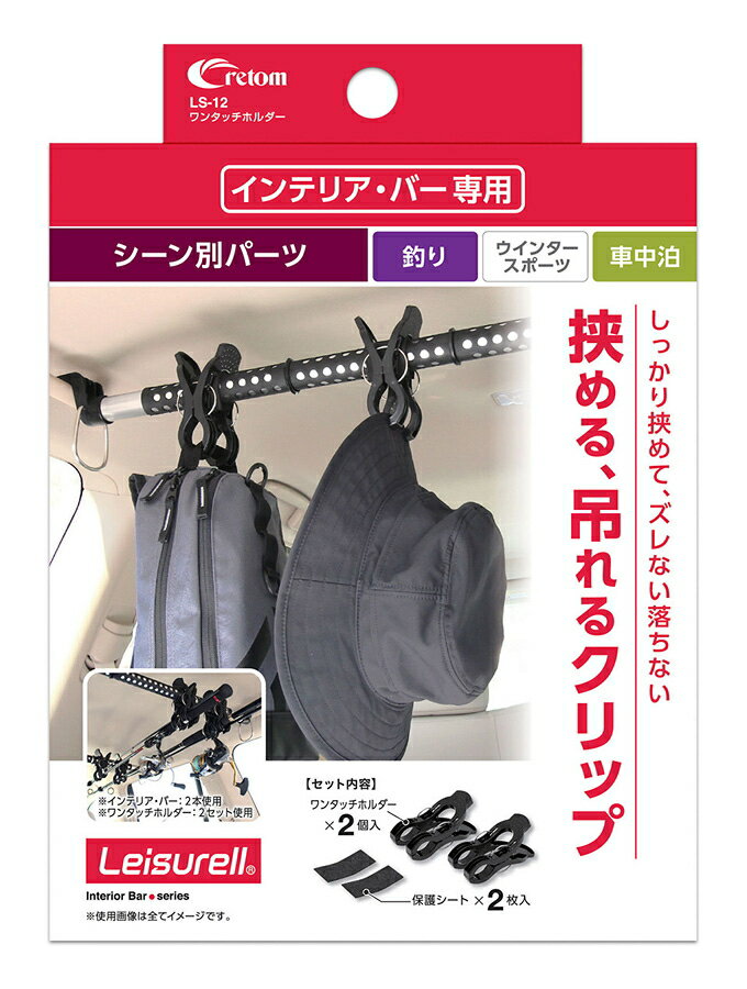 ■お買い物の前にご確認ください ⇒ 在庫表示/配送/送料等のご説明この商品の他のタイプを見る 商品情報 クレトム 車内用ロッドホルダーパーツ ワンタッチホルダー LS-12 / 車内用ロッドホルダー 竿受け 竿掛け パーツ 釣り竿や小物などを挟んで固定できるホルダーです。 商品サイズ W66 D65 H130 パッケージサイズ W130 D65 H180 ■入数:2 ※インテリア・バー本体は別売り