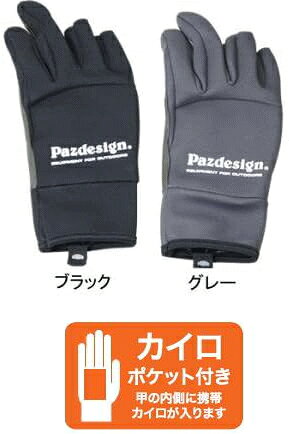 パズデザイン カイロポケットTN3フィンガーレスグローブ ZGV-007 ブラック Lサイズ / 防寒ウェア 手袋 釣具 【メール便発送】 【歳末セール】