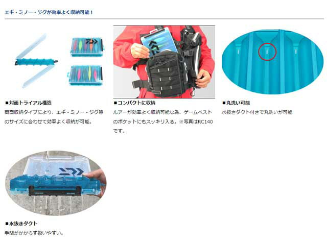エギ・ミノー・ジグが効率よく収納可能! ●対面トライアル構造 両面収納タイプにより、エギ・ミノー・ジグ等のサイズに合わせて効率よく収納が可能。 ●コンパクトに収納 ルアーが効率よく収納可能な為、ゲームベストのポケットにもスッキリ入る。 ●丸洗い可能 水抜きダクト付きで丸洗いが可能 ●水抜きダクト 手間がかからず扱いやすい。 ●サイズ:205×145×40mm ※画像はイメージです、カラー、サイズ等が異なる場合があります。エギ・ミノー・ジグが効率よく収納可能! ●対面トライアル構造 両面収納タイプにより、エギ・ミノー・ジグ等のサイズに合わせて効率よく収納が可能。 ●コンパクトに収納 ルアーが効率よく収納可能な為、ゲームベストのポケットにもスッキリ入る。 ●丸洗い可能 水抜きダクト付きで丸洗いが可能 ●水抜きダクト 手間がかからず扱いやすい。 ●サイズ:205×145×40mm ※画像はイメージです、カラー、サイズ等が異なる場合があります。