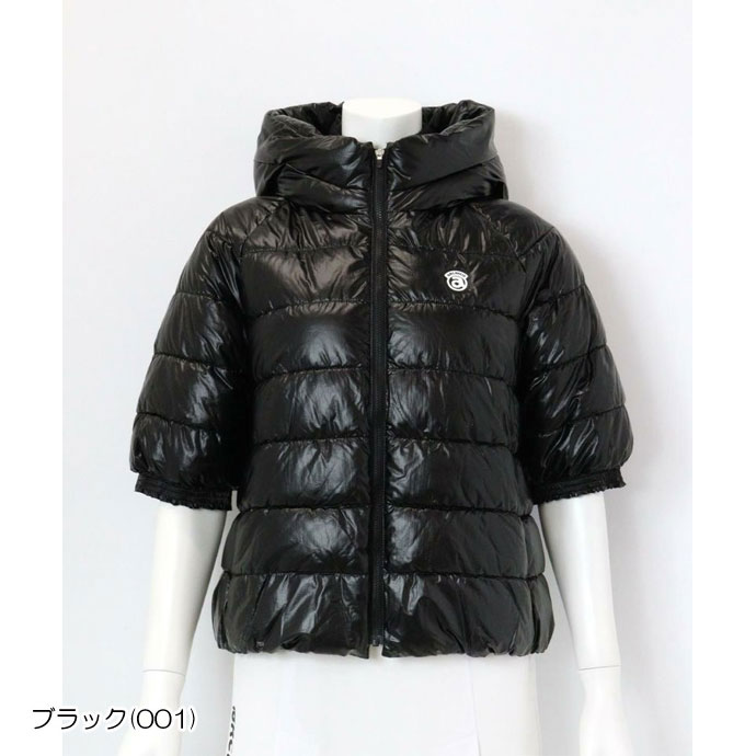 光沢感のある中綿半袖ブルゾンです。保温性に優れた裏地を採用し、あたたかさを保ちます。袖口と裾はゴム入りでフィット感があり、首回りはリブニットで柔らかな印象です。フロントにはファスナー付きポケットが2つあり、同素材のスカートとセットアップでの着用も可能です。[素材]:表地:ナイロン100%(ポリウレタン樹脂加工)/裏地:ポリエステル100%/中わた部分:ポリエステル100%/ニット部分:アクリル76%×ポリエステル11%×ナイロン9%×ウール4%