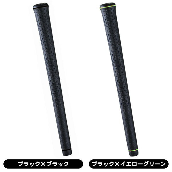 エラストマー素材とは思えないしっとりとした質感を持たせるとともに、特殊撥水素材を混合することで雨や汗などの水分がグリップ内に吸収されることを防止し、簡単な拭き取りで余計な水分を除去することを可能にしました。また、グリップの手元側と先端側で異なるデザインパターンを施しており、手元側は凸凹のあるテクスチャで手のひらとの密着感を高め、先端側は平面的なテクスチャで指先の感覚を活かし、精度の高い安定したスイングをサポートします。スタンダードモデルに比べてテーパーを緩めに設計することにより、両手で均一なホールド感を持たせました。可変式クラブに対応するため、360度に亘って均一な設計でロゴデザインもなく、どの向きでも使用することが可能です。■材質 エラストマー(特殊撥水樹脂素材) ■コアサイズ M60 ■標準重量 50g±1g ■カラー ブラック×ブラック / ブラック×イエローグリーン / ブラック×イエロー / ブラック×オレンジ / ブラック×シルバー / ブラック×ピンク / ブラック×スカイブルー