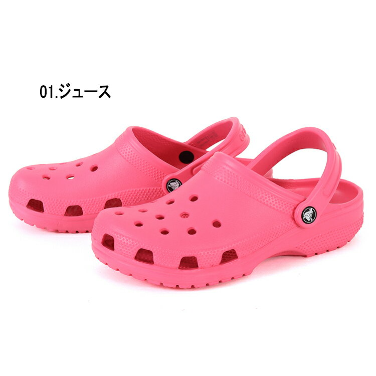 ■商品詳細ブランドcrocs(クロックス)モデル名CLASSIC CLOG(クラシック クロッグ)カラー01.ジュース (10001-6UB)02.アシディティー (10001-76M)03.ムーンジェリー (10001-5Q6)04.ドリームスケープ (10001-5AF)アッパー素材合成樹脂底材合成樹脂商品紹介オリジナル。オールマイティ。快適。革命的な快適さで世界を圧巻したアイコニックなクロッグ!履くたびに愛着が深まっていく、実用的で自由、頼りになる快適シューズ。クロックス クラシック クロッグは、軽くて快適な履き心地のアイコニックコンフォート? と個性に合わせたカラー展開が特徴のコレクションです。【22.0】【23.0】【24.0】【25.0】 ご購入にあたっての諸注意当店は実店舗とオンラインショップの在庫を共有しております。在庫管理には細心の注意を払いますが、ご注文時に在庫があっても、タイムラグ等により欠品である場合がございます。また商品によっては、実店舗での試着跡・皺(しわ)等が付く場合がございます。検品時にメンテナンスを行い、事前に商品状態の画像をお送りし、ご購入の判断を仰ぐ場合がございます。予めご了承くださいますようお願い申し上げます。 海外のサイズ表記と日本のサイズ表記でも記載しております。あくまでも当社のサイズ選びの目安であり、メーカー・モデルによって記載数値に誤差がでることがございます。予めご了承くださいますようお願い申し上げます。当店の商品には並行輸入品もございます。製造ブランドで検品審査に合格した商品を輸入しておりますが、国ごとの基準差による作りの粗さや、海外からの輸送による外箱の破損や汚れなど、多少のダメージや表記のある場合がございます。何卒ご理解の程、よろしくお願い致します。商品箱につきまして商品によりましては、ご注文の商品とは異なる箱でお送りする場合がございます。(高級靴は除きます。)ご了承ください。商品の梱包作業から発送に至るまで当社では検品から梱包までの一連の作業をカメラにて録画しております。録画されている動画をもとに、お客様からの申し出が詐欺まがいの行為と判断された場合は当店では警察に届けることにしています。